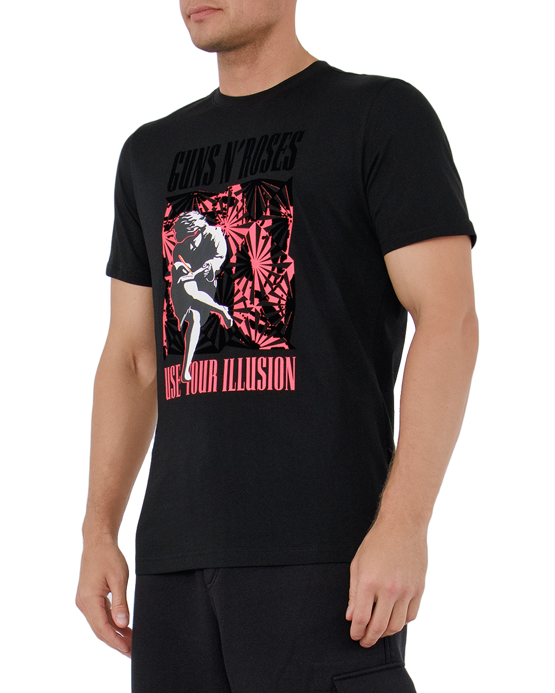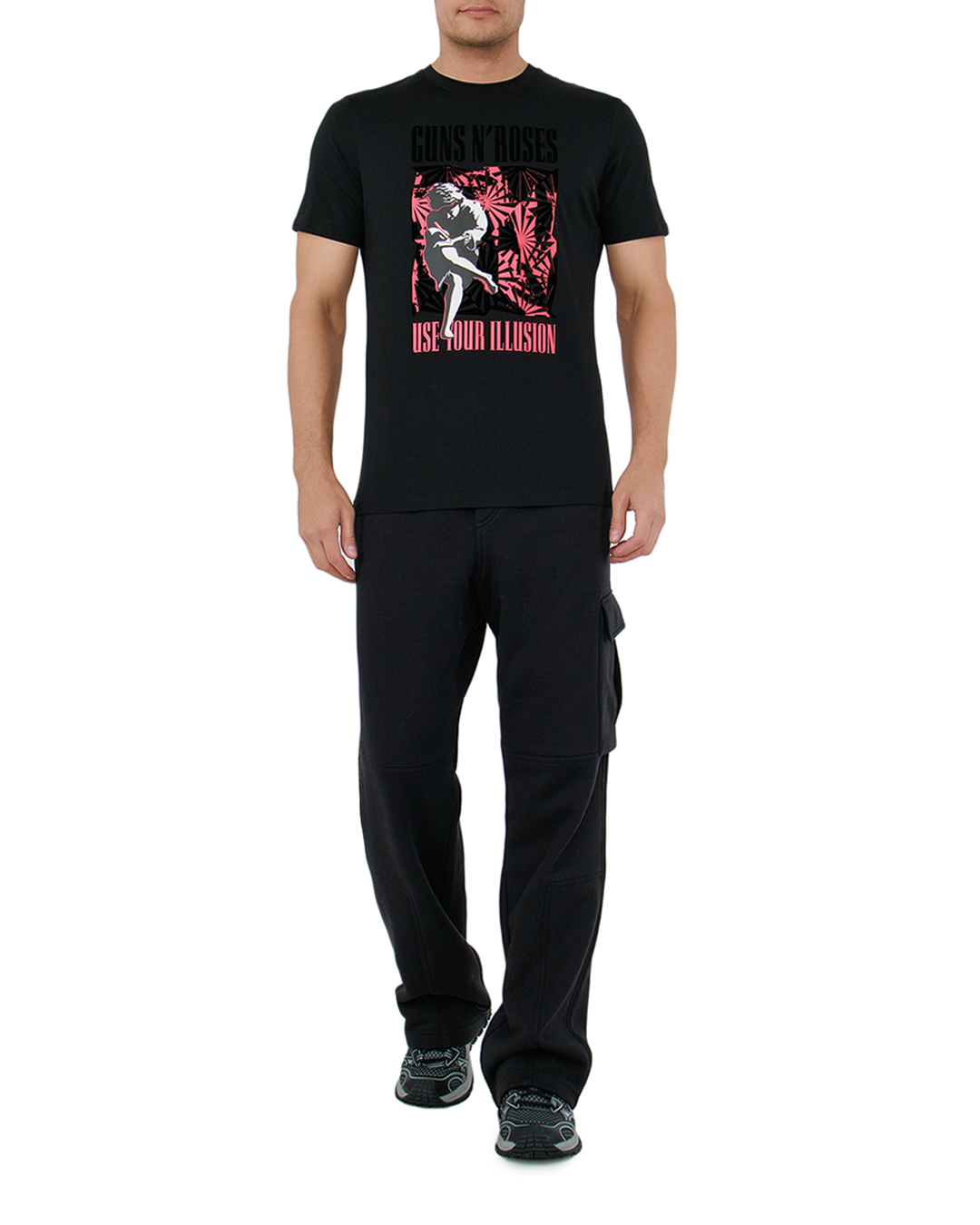 Эта футболка — вершина рок-стиля, сочетающая в себе элементы бунтарства и креативной выразительности. Насытленный черный цвет создает контрастный фон, делая яркий принт центральным элементом композиции. Иллюстрация на груди с графическим рисунком и стильным шрифтом придает изделию ретро-шарм и мятежный дух, отсылая к эпохе классического рока. Контрастные акценты в дизайне выделяются, заполняя образ энергией и характером. Высококачественный хлопок обеспечивает комфорт и долговечность, в то время как классический крой гарантирует удобную посадку и свободу движений. Каждая деталь, от аккуратной обработки швов до мягкой горловины, выполнена с точностью, подчеркивая высокое качество изделия. Эта футболка — отличный выбор для тех, кто хочет добавить в свой гардероб немного дерзости и выразительности, она прекрасно сочетается с джинсами и кожаными аксессуарами, завершая стильный и эффектный образ.