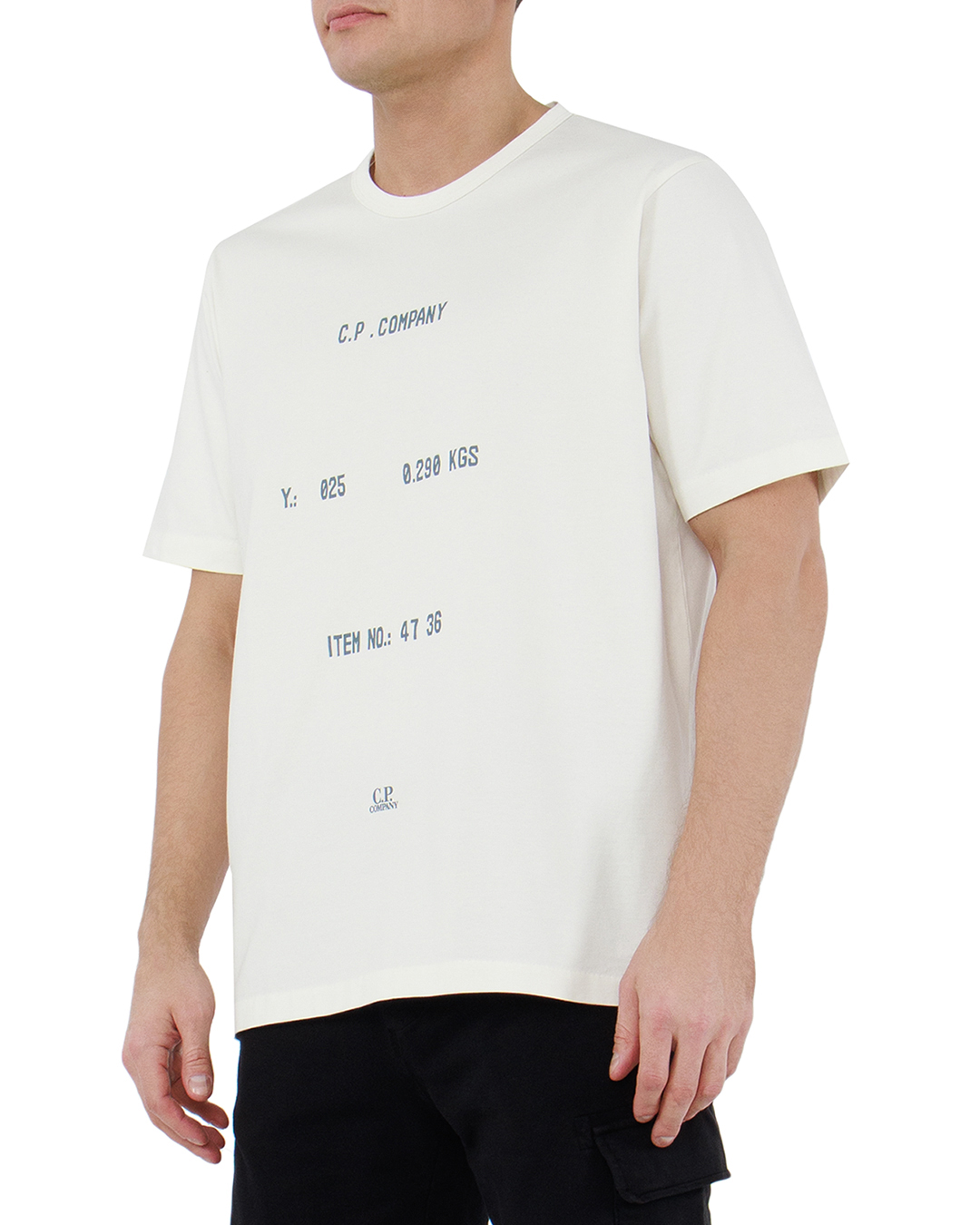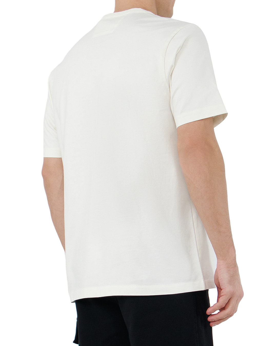 Футболку выполнили из мерсеризованного хлопка. Спереди модель украсили контрастным текстовым принтом с логотипом бренда.