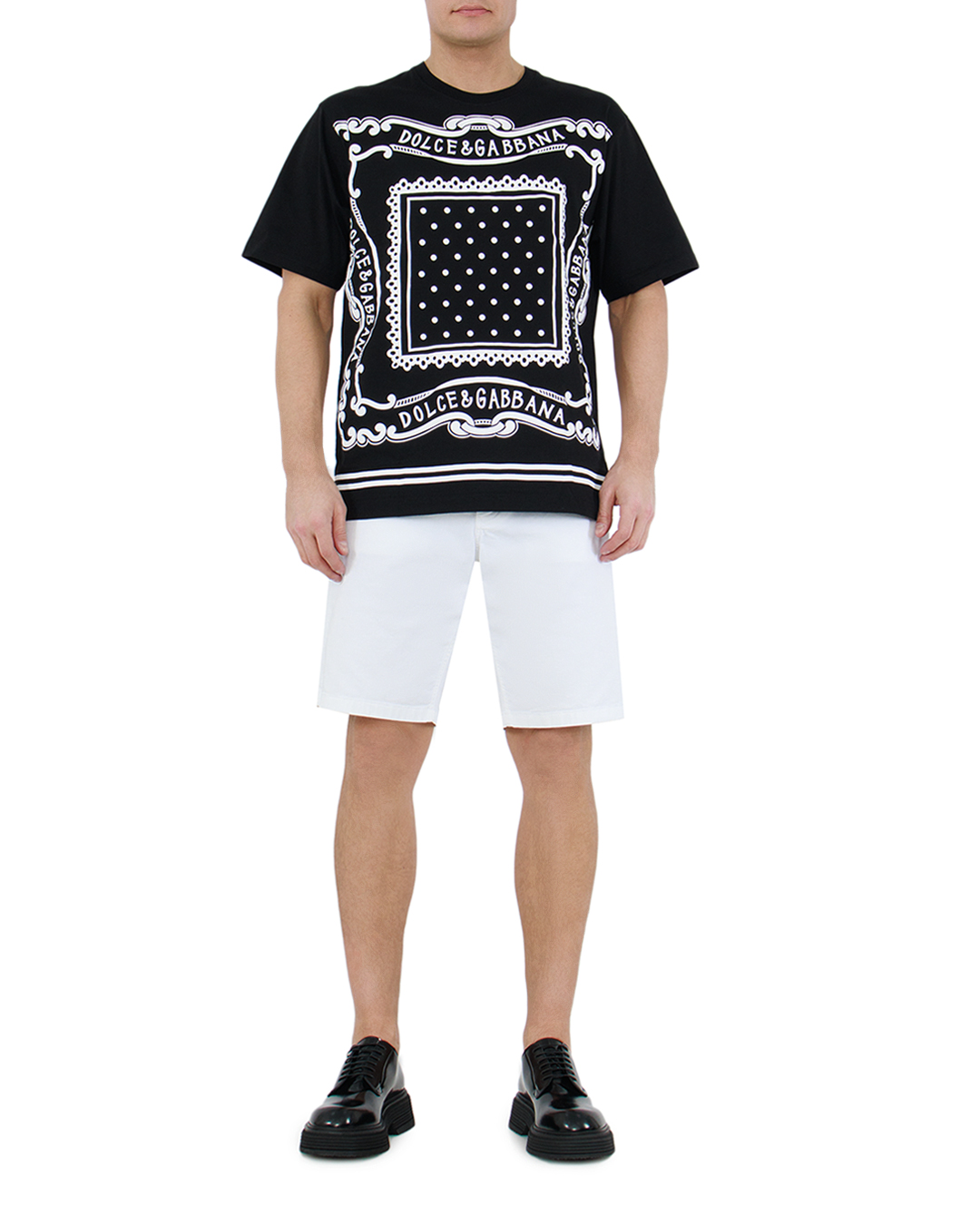Футболка с круглым вырезом из мягкого хлопкового джерси и стильным бандана-принтом придаст образу свежести и оригинальности. Регуляр fit обеспечивает комфорт и свободу движений, делая ее универсальным выбором для любого повода. Отличный вариант для сочетания с джинсами или шортами, идеально подходит для повседневного стиля.