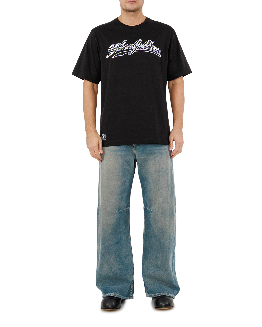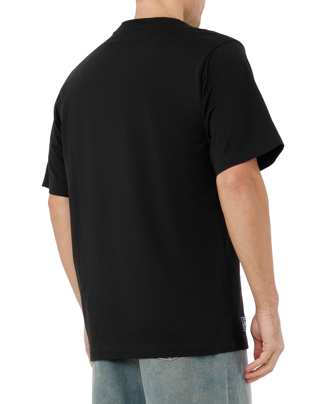 Эта футболка — пример современной дизайнерской эстетики и выраженной индивидуальности. Она выполнена из качественного хлопка, обеспечивающего мягкость и комфорт при носке, и отличается аккуратным силуэтом, подчеркивающим городской стиль. Глубокий черный оттенок служит идеальным фоном для выразительной вышивки логотипа, выполненной в духовитом винтажном стиле. Крупная надпись привлекает внимание и добавляет нотку эксклюзивности. Классический круглый вырез обработан тонкой трикотажной бейкой, предоставляя дополнительную прочность и предотвращая деформацию. Прямые рукава и низ изделия обеспечивают универсальность кроя, делая футболку подходящей для разнообразных образов. Футболка дополнена фирменной нашивкой в нижней части, придающей изделию узнаваемость и усиливающей брендовый акцент. Это идеальный выбор для тех, кто ценит стиль и высокое качество исполнения, позволяющий выразить индивидуальность в каждой детали.