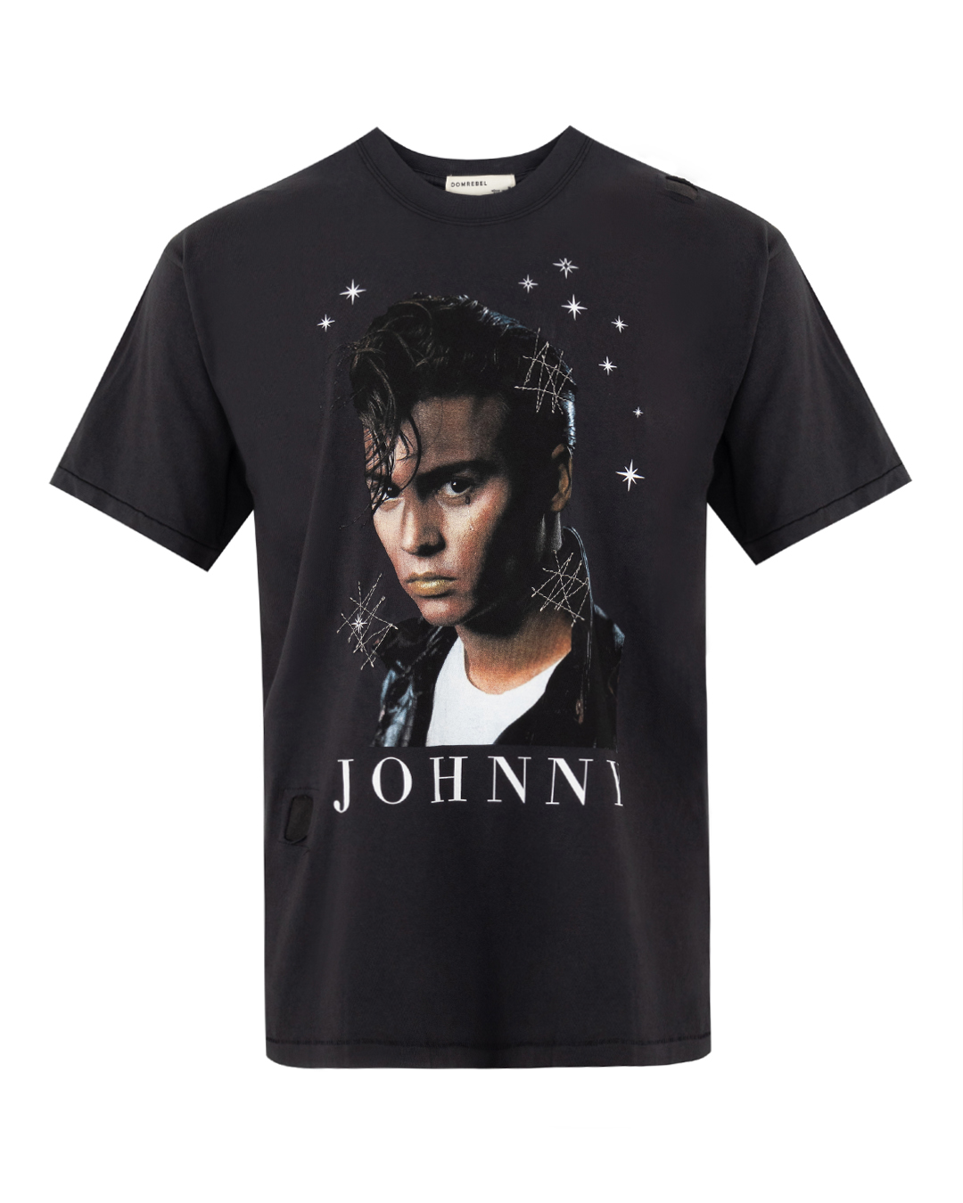 Футболка Dom Rebel из трикотажного хлопка с принтом. Модель прямого свободного силуэта с круглой линией выреза и спущенной линией плеч.