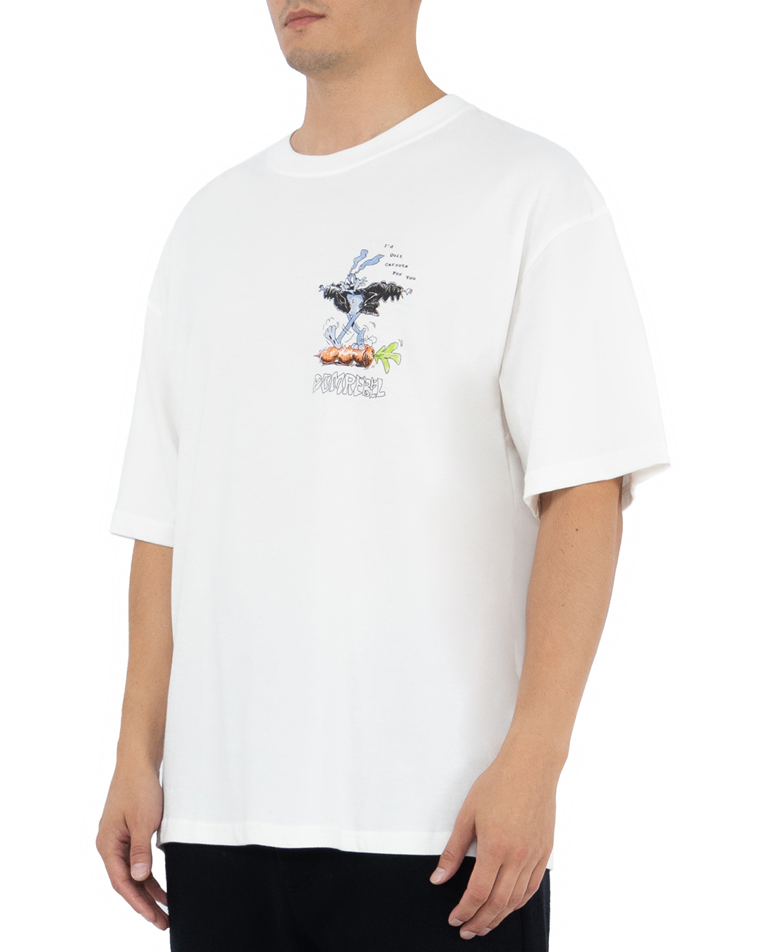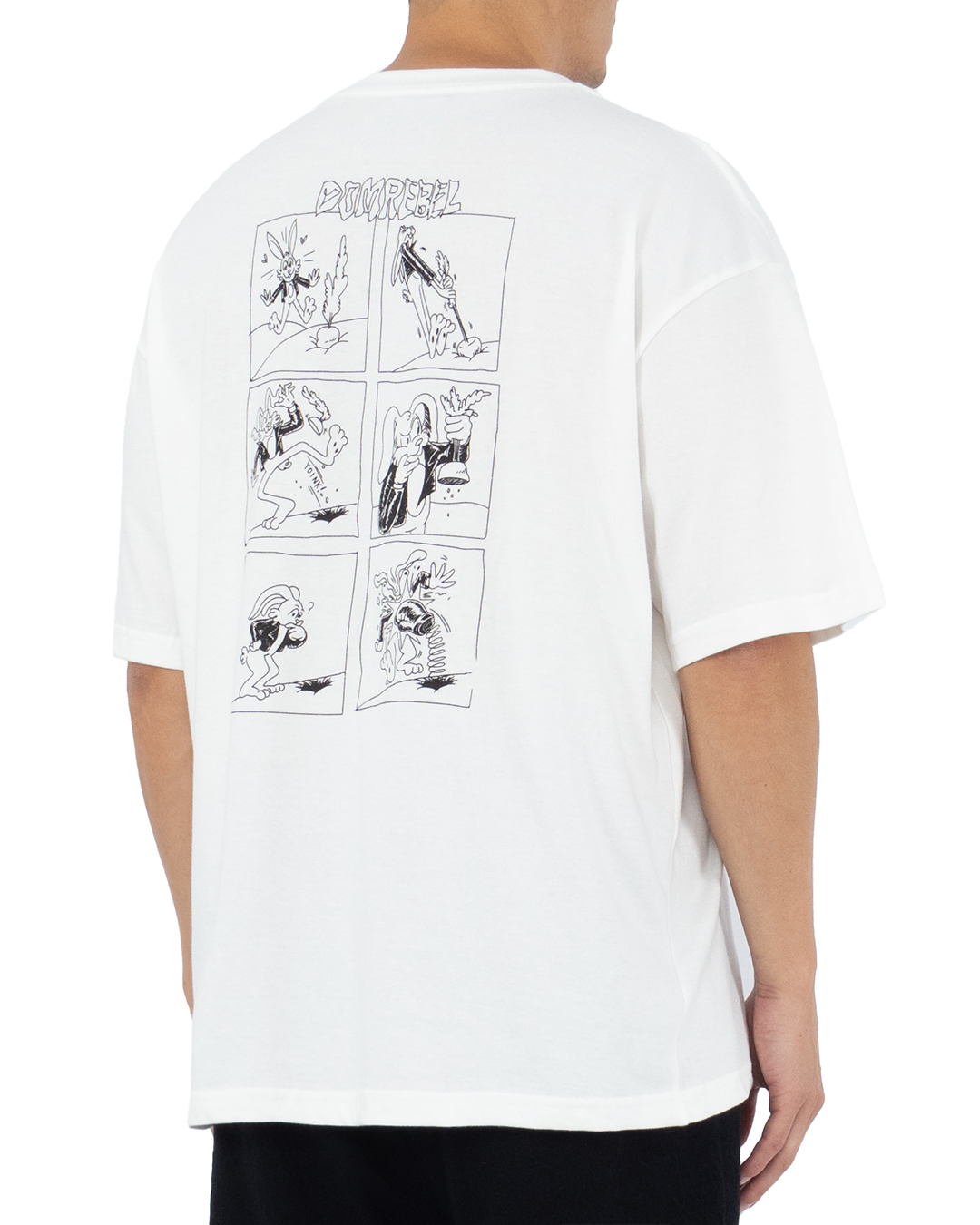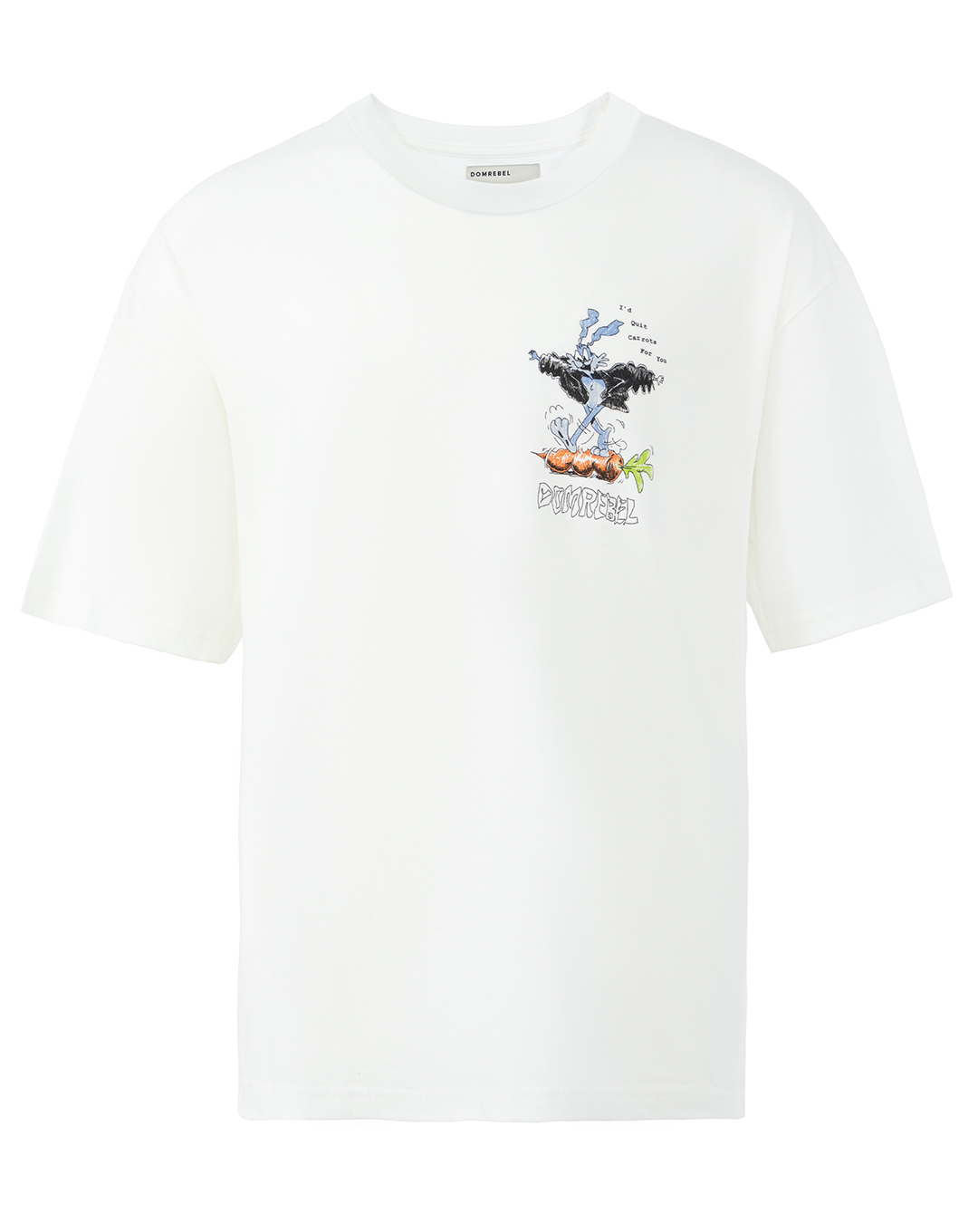 Футболка от Dom Rebel представляет собой воплощение креативного стиля, соединяющего современное искусство и моду. Изготовленная из высококачественного хлопка, она обладает прямым кроем, что делает её универсальной. Эклектичный дизайн включает графику с мультяшными персонажами и элементы, напоминающие нарисованные от руки. Особенным акцентом служит надпись, выполненная в стиле нашивки с эффектом страз, которая контрастирует с небрежной графикой. Мягкий кремовый оттенок ткани подчеркивает яркие детали, создавая визуально насыщенный образ. Эта продуманная стилизация делает футболку идеальной для повседневного ношения.