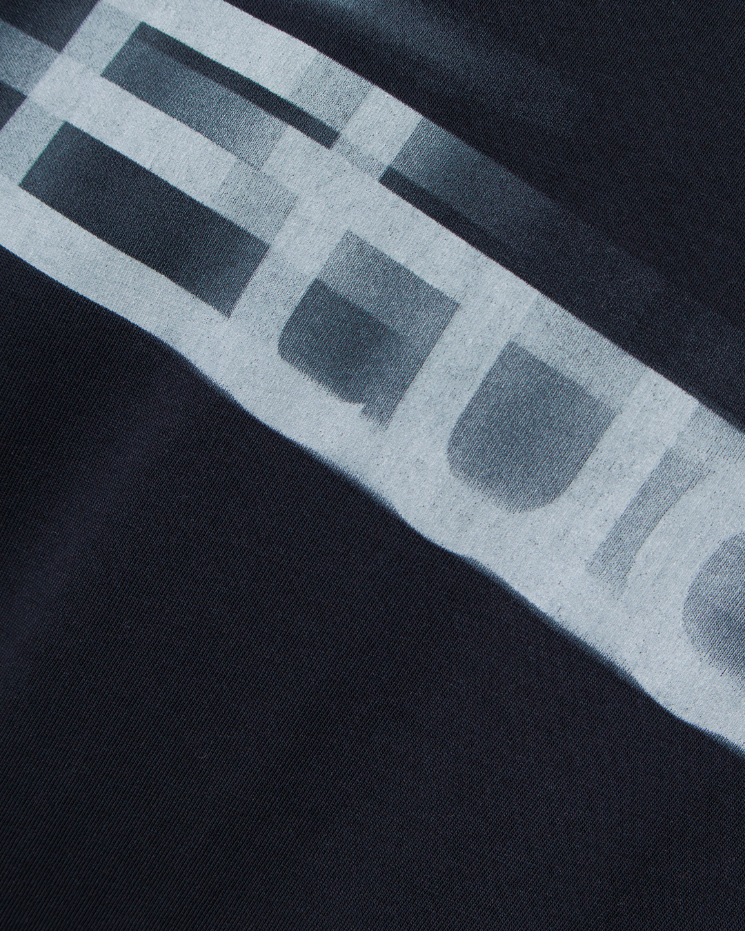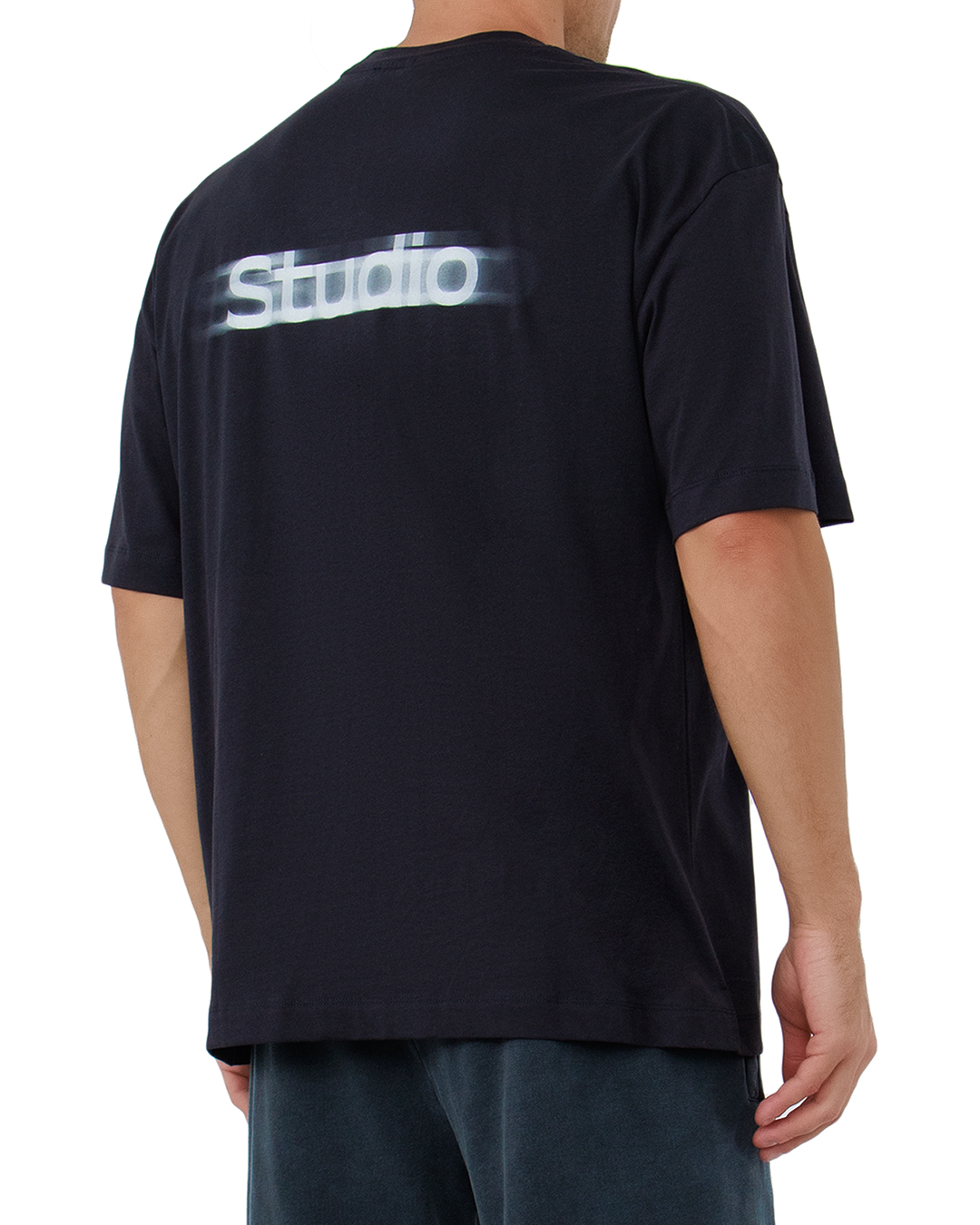 Эта футболка — воплощение концептуального минимализма и художественного выражения. Выполненная из премиального хлопка, она предлагает идеальное сочетание мягкости и стойкости, идеально подходя для современного гардероба. Свободный крой с классическим круглым вырезом обеспечивает непринужденный силуэт, который подходит для любых стилей и образов. Центральным элементом является оригинальный принт с эффектом размытия, добавляющий динамики и визуальной глубины. Монохромная палитра подчеркивает современный и урбанистический характер футболки, делая её идеальной основой для слоистых или монохромных ансамблей. Высококачественная печать и чёткие линии логотипа свидетельствуют о внимании к деталям и высоком мастерстве исполнения. Эта футболка станет эффектным акцентом в повседневном образе, отражая индивидуальность и любовь к современному искусству через простоту и стиль.