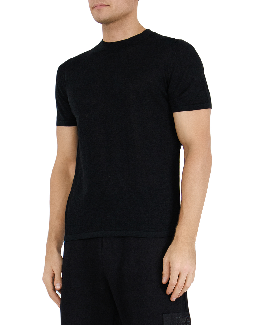 Эта футболка — воплощение минималистичной элегантности и утончённости. Черный оттенок создаёт эффектный фон, который легко интегрируется в любой гардероб, привнося спокойствие. Изготовленная из премиального хлопка, эта футболка отличается невероятной мягкостью и воздухопроницаемостью, обеспечивая комфорт в течение всего дня. Округлый вырез горловины, выполненный в лаконичном стиле, подчёркивает изящество и простоту линий. Чистый дизайн без лишних деталей акцентирует внимание на качестве исполнения и идеальной посадке. Этот элемент гардероба отличается своей универсальностью, предоставляя безграничные возможности для сочетаний. Футболка прекрасно сочетается как с классическими брюками для более формального образа, так и с джинсами, создавая стильный повседневный лук. Эта вещь станет незаменимым базовым элементом, поддерживая современные модные тенденции и подчеркивая ваш утончённый вкус.