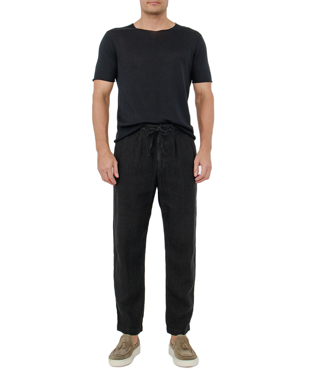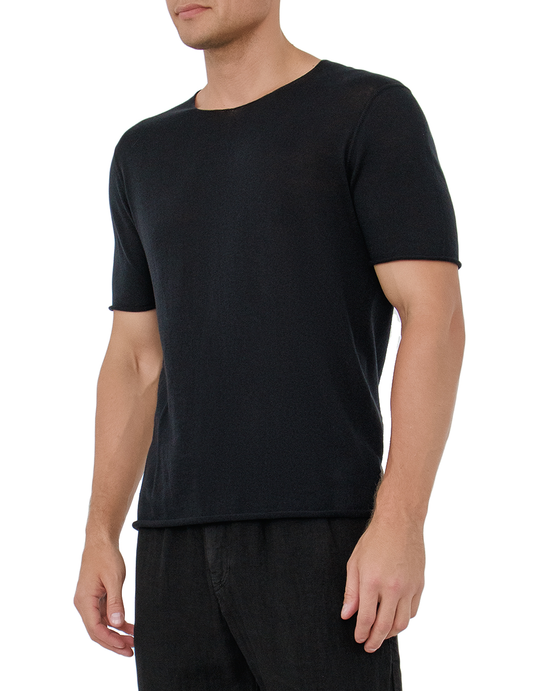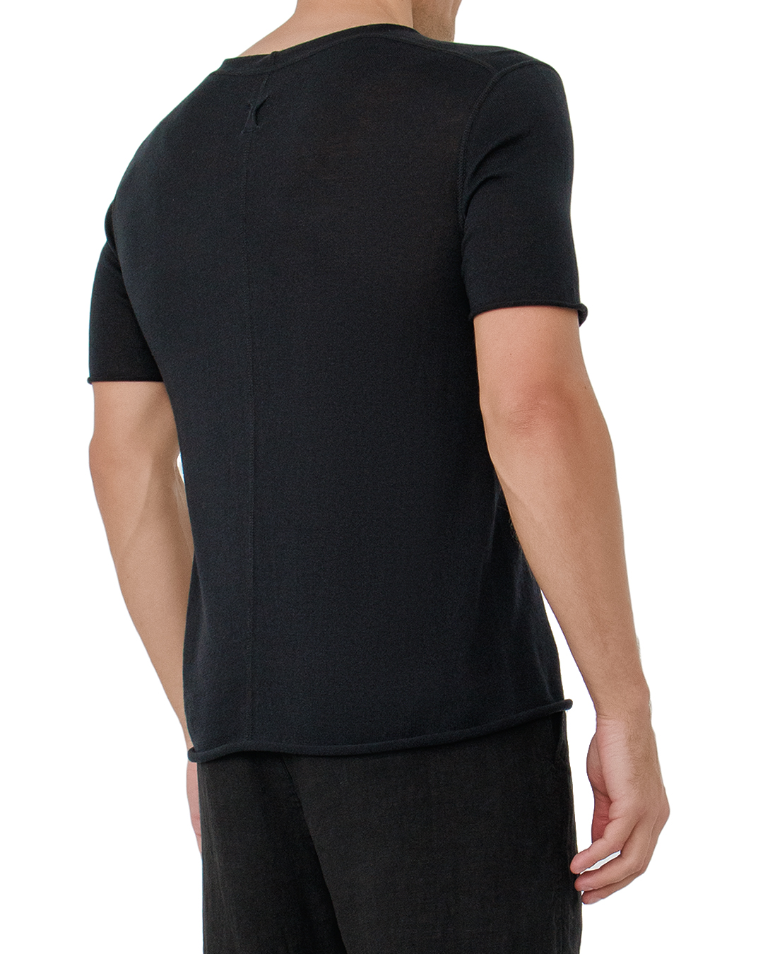 Футболка HANNES ROETHER — это квинтэссенция современного минимализма и безупречной элегантности. Глубокий черный оттенок придаёт изысканность и универсальность, позволяя интегрировать её в любой гардероб. Материал мягкий и лёгкий, обеспечивает комфорт и приятные тактильные ощущения. Прямой крой создаёт элегантный и удлинённый силуэт, подчёркивающий фигуру без излишней облегающей посадки. Особое внимание привлекает стильный вырез горловины с лёгкой необработанностью, добавляющей уникальный акцент и современную текстурированность. Швы выполнены с идеальной точностью, демонстрируя высокий уровень мастерства и внимание к деталям. Эта футболка станет базовым элементом стильного образа, сочетаясь как с классическими брюками, так и с расслабленными джинсами, подчёркивая вашу индивидуальность и уверенность в выборе.