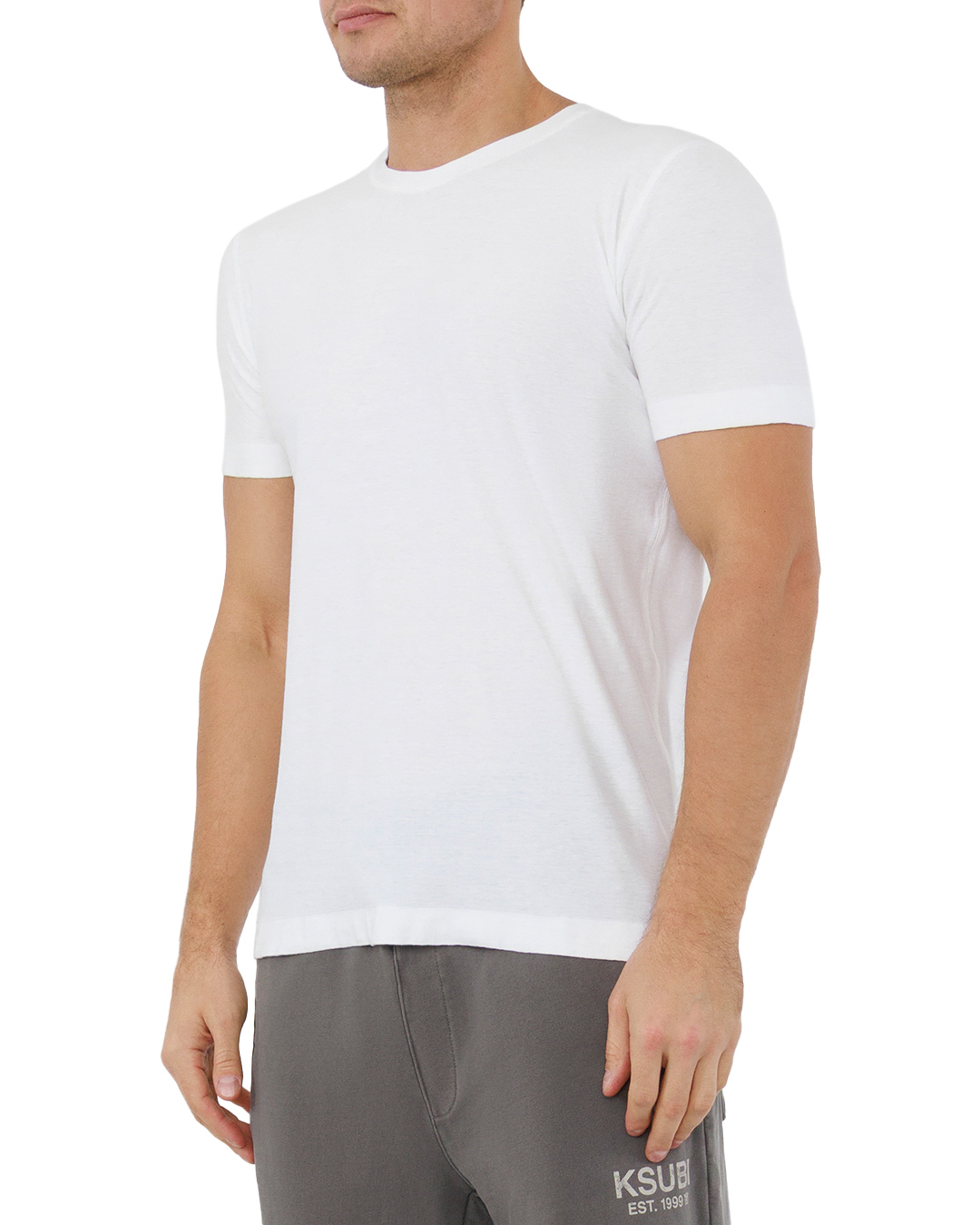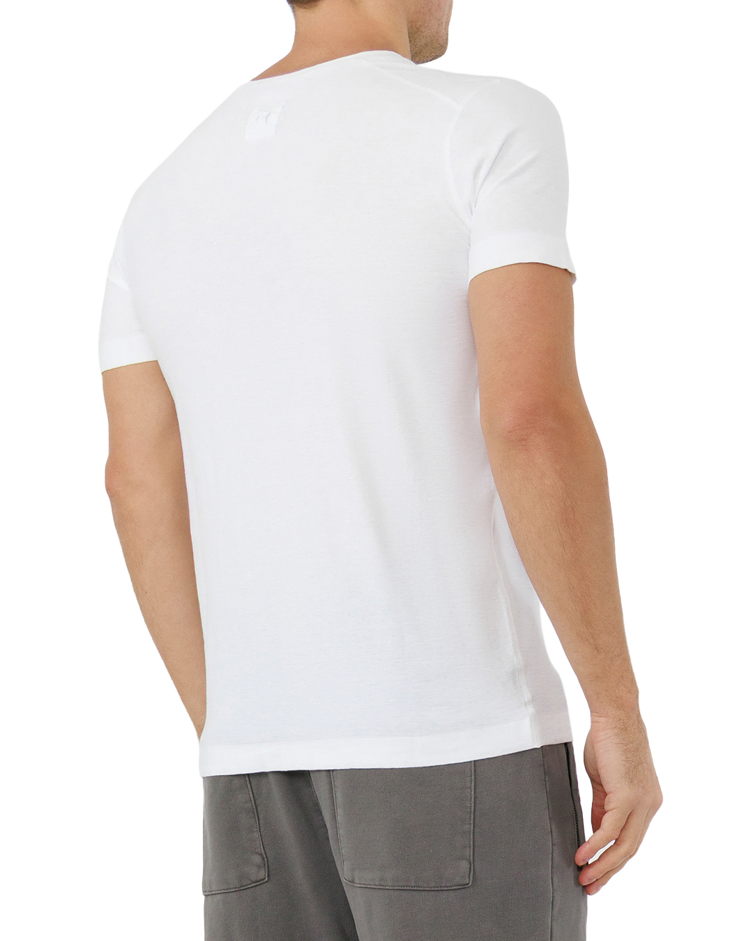 Эта футболка — идеальное воплощение минималистичной элегантности и универсального стиля. Сшитая из высококачественного, мягкого хлопка, она предлагает максимальный комфорт и воздухопроницаемость, что делает её незаменимой основой гардероба. Чистый белый цвет подчеркивает свежесть и чистоту линий, акцентируя внимание на изысканной простоте. Классический крой обеспечивает идеальную посадку, гармонично обрамляя фигуру. Округлый вырез горловины аккуратно обработан эластичной тесьмой, предотвращая растягивание и добавляя элемент завершенности. Отсутствие лишних деталей и декора делает эту футболку универсальным элементом, который будет легко сочетать с различными стилями и образами, от кэжуал до более формальных. Это незаменимый элемент одежды, который подчеркнет вашу приверженность к качеству и эстетике в каждом модном выборе.