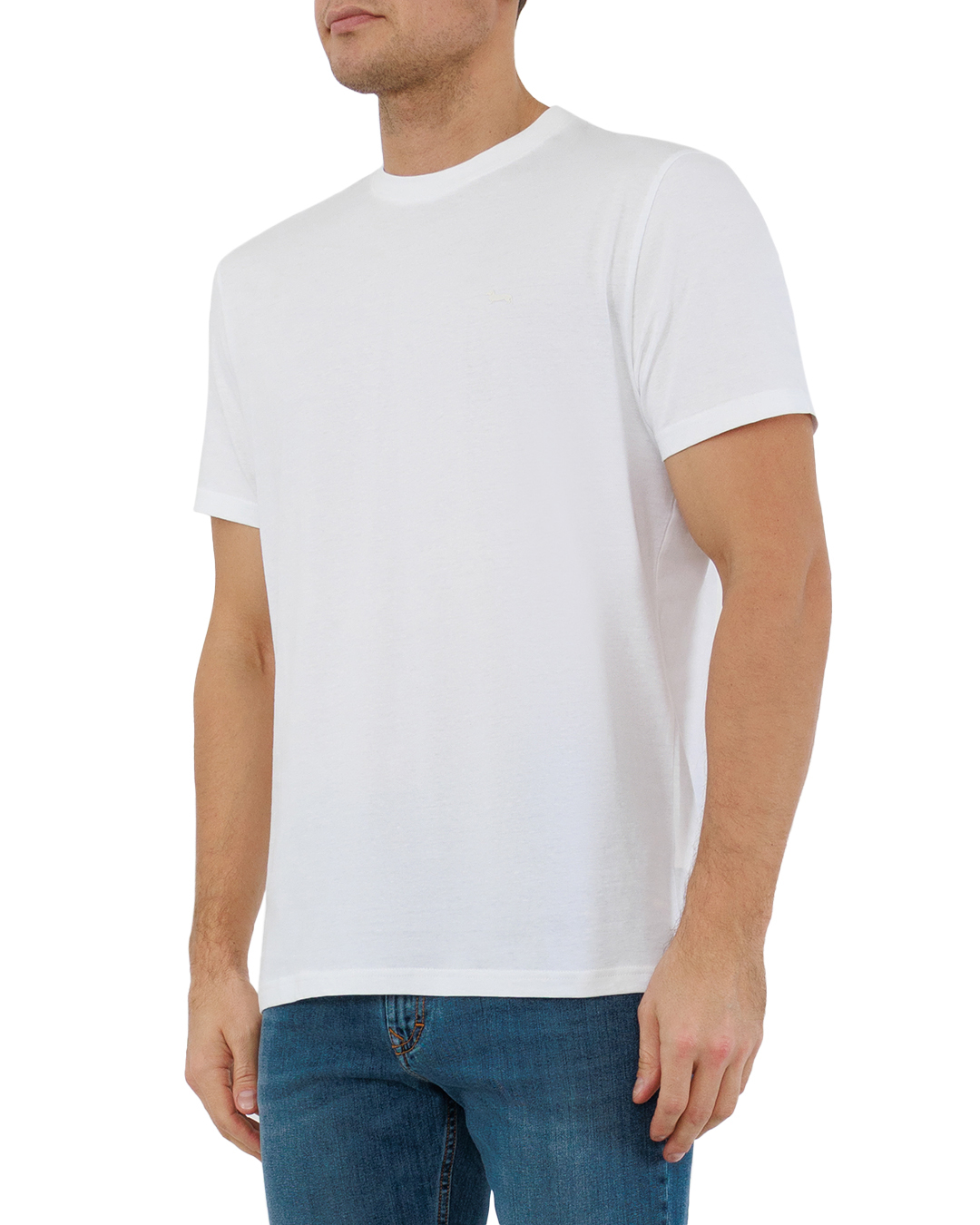 Эта футболка — воплощение чистоты и универсальности, которая станет основой для создания изысканных и стильных образов. Она выполнена из высококачественного мягкого хлопка, который дарит комфорт и позволяет коже дышать, обеспечивая идеальную посадку. Анатомический крой подчёркивает естественные линии тела, обеспечивая свободу движений. Круглый вырез горловины обработан дополнительно, сохраняя форму и adding долговечность. Белоснежный цвет футболки является символом свежести и лёгкости, идеально подходя для любого времени года и легко сочетается с различными элементами гардероба. Минималистичная вышивка логотипа на груди едва заметна, но добавляет изделию нотки изысканности и фирменного стиля. Аккуратная обработка швов демонстрирует непревзойдённое внимание к деталям и качество изготовления. Эта футболка станет безупречной основой как для повседневных, так и для более формальных сочетаний, создавая гармоничный и современный образ.