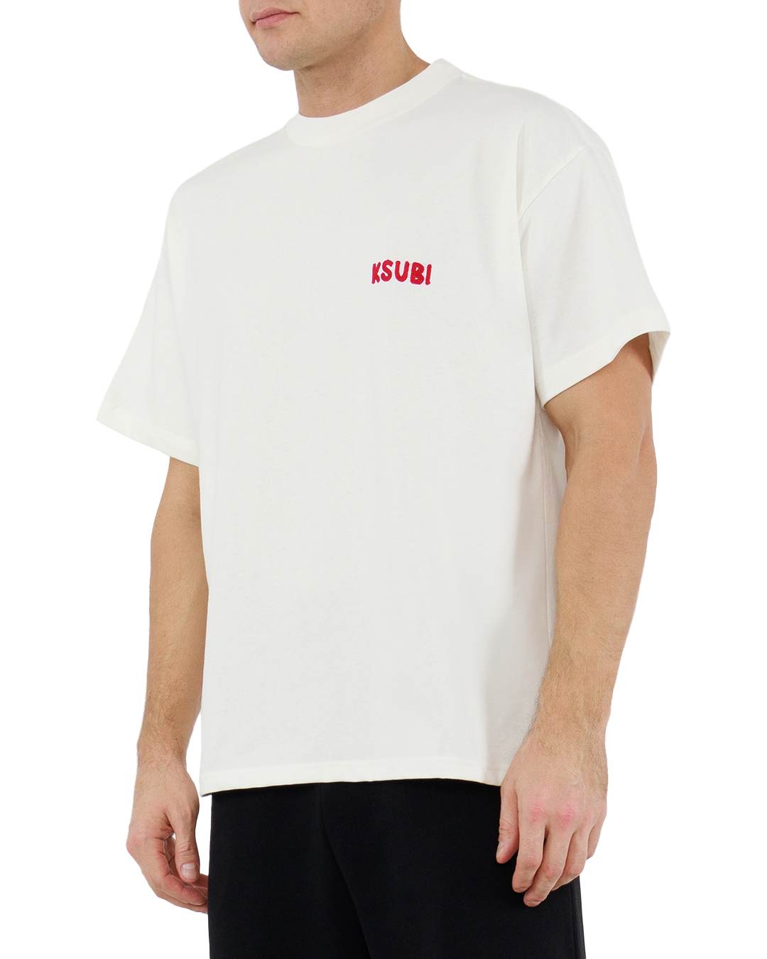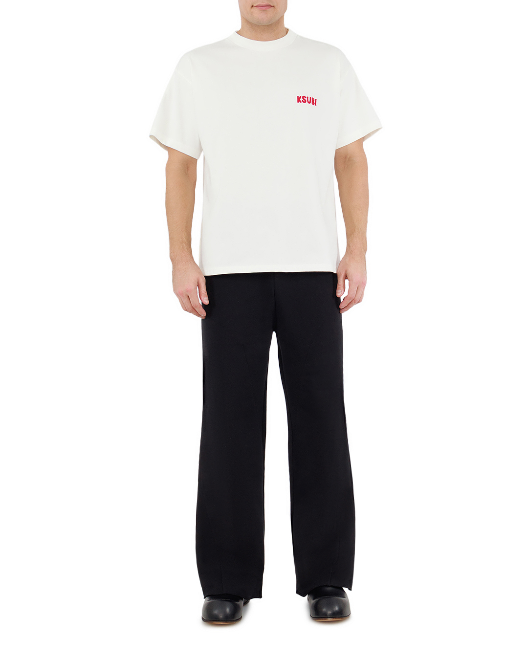 Эта футболка — пример минимализма и утонченной эстетики, воплощённая в чистом белом оттенке. Высококачественный хлопок обеспечивает невероятный комфорт и мягкость, делая её идеальной для ежедневной носки. Свободный крой создает непринужденный и современный силуэт, который подходит для любого типа фигуры и легко адаптируется к различным стилям. Круглый вырез горловины аккуратно обработан, что обеспечивает комфорт и долговечность изделия. На груди расположен лаконичный логотип контрастного красного цвета, добавляющий стильный акцент и подчеркивающий принадлежность к современным модным трендам. Этот элемент обеспечивает незабываемый визуальный эффект, оставаясь при этом сдержанным. Плоские швы и обработанные края подчеркивают внимание к деталям и высокое качество исполнения, гарантируя, что футболка будет служить долго без потери формы.