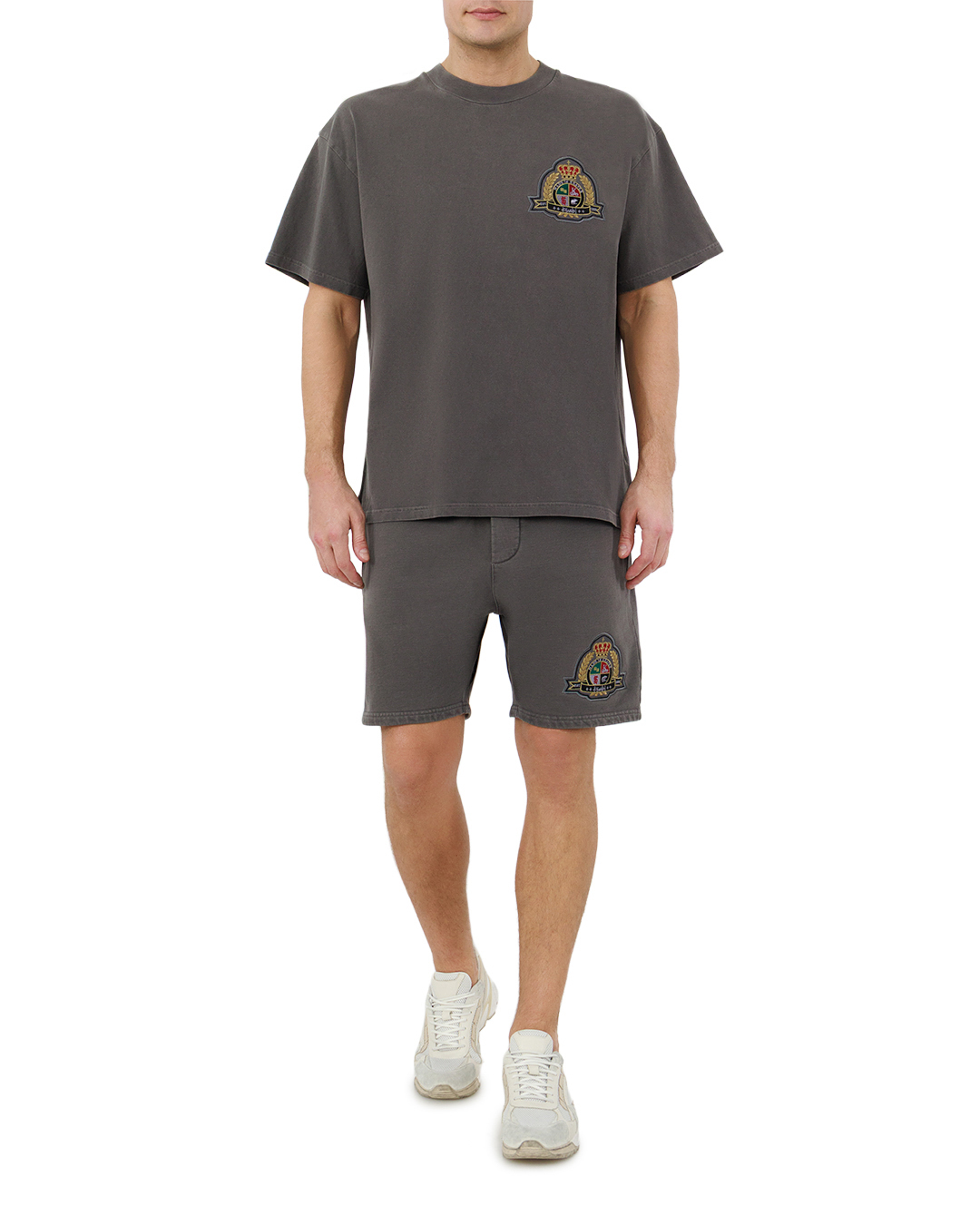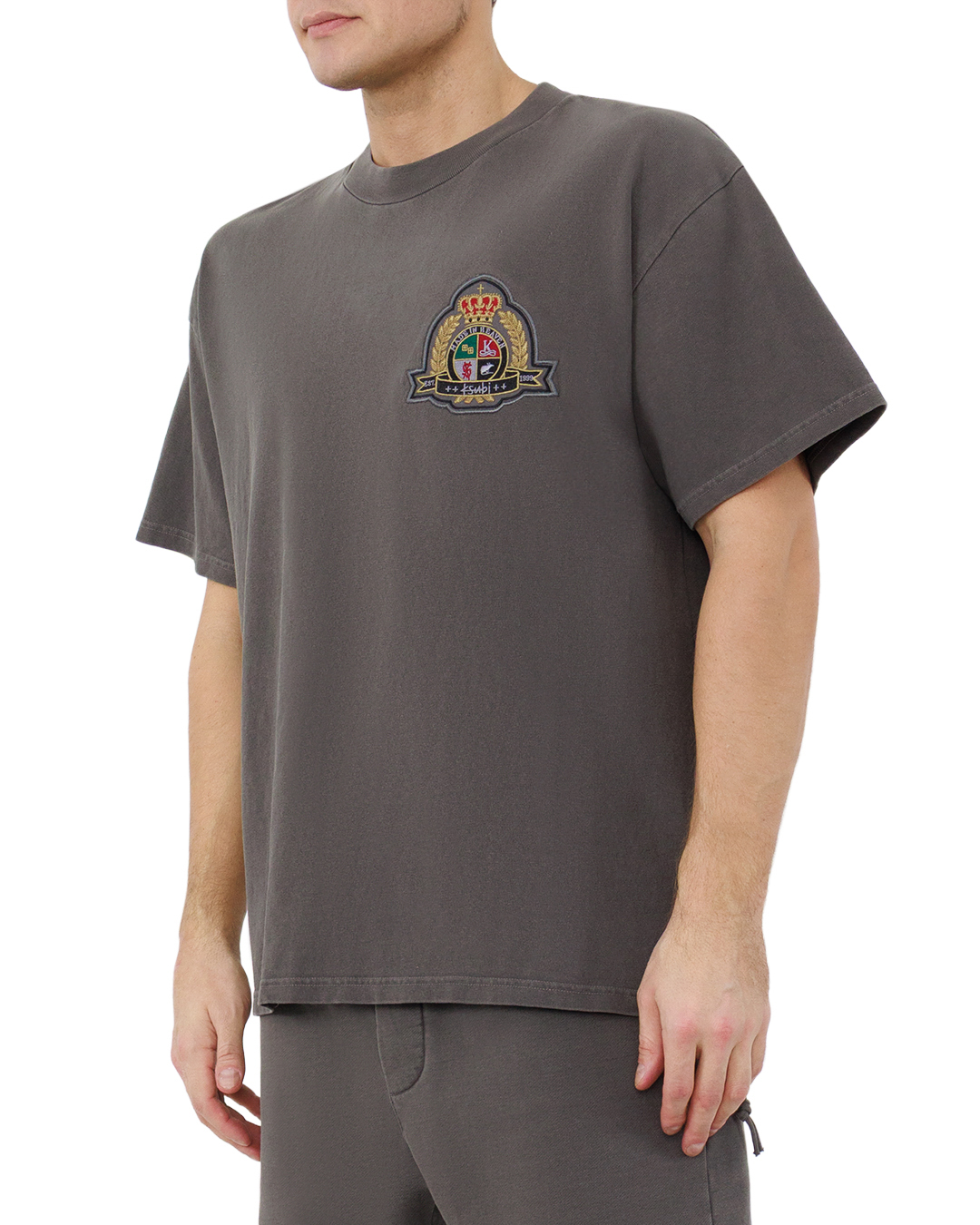 Эта футболка — воплощение сдержанной выразительности. Глубокий чёрный цвет полотна создаёт эффектный фон, а лаконичный графический акцент в бордово-красных тонах на груди добавляет образу динамичности. Оверсайзный крой с удлинёнными рукавами формирует расслабленный, но структурированный силуэт. Классический круглый вырез горловины подчёркивает универсальность модели, а аккуратная отделка швов и ровные подгибы краёв придают изделию законченность. Минимализм в деталях делает эту футболку стильным базовым элементом гардероба, способным трансформироваться в центральный акцент образа.