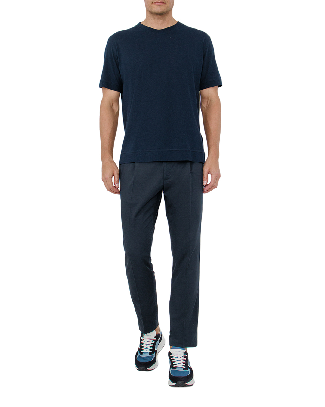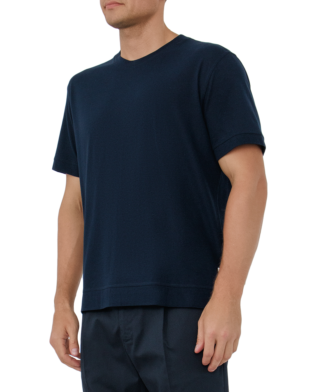 Эта футболка в свежем синем оттенке — пример лаконичной элегантности и повседневного шика. Изготовленная из мягкого и дышащего хлопка, она обеспечивает непревзойденный комфорт и легкость на протяжении всего дня. Круглый вырез с тщательно обработанной риб-отделкой подчеркивает линию шеи и придаёт лаконичность, не отвлекая от основного дизайна. Прямой крой гарантирует свободную посадку, позволяя создавать расслабленные, стильные образы. Минималистичная отделка без лишних деталей делает эту футболку универсальной основой гардероба. Маленькая фирменная бирка на боковом шве добавляет изысканности, оставаясь при этом ненавязчивой. Эта футболка станет идеальной компаньонкой как для джинсов, так и для более формальных брюк, позволяя легко адаптировать её к различным стилям и случаям.