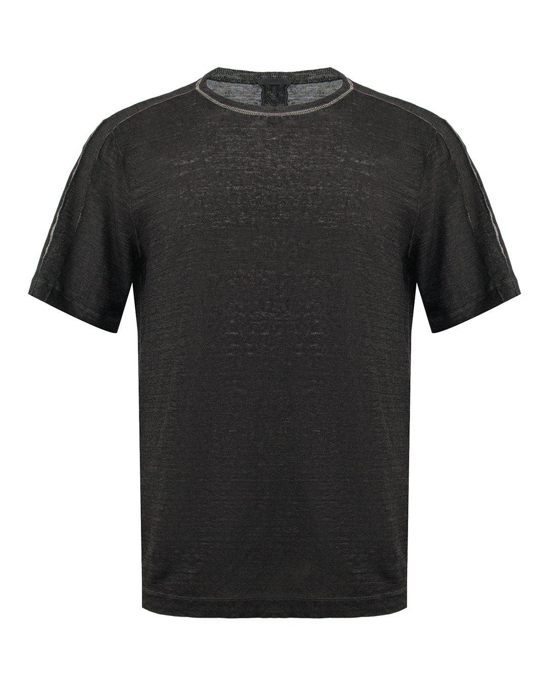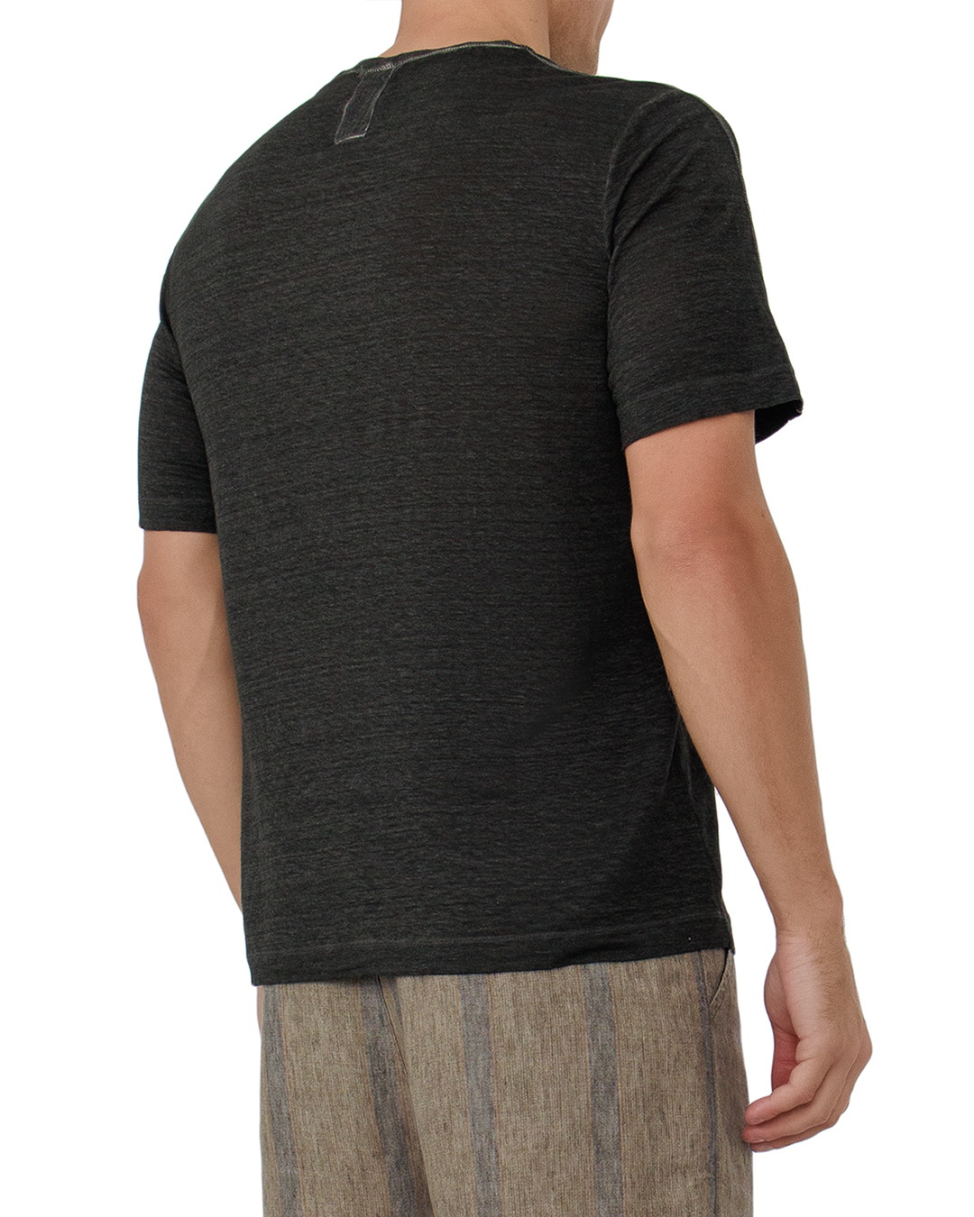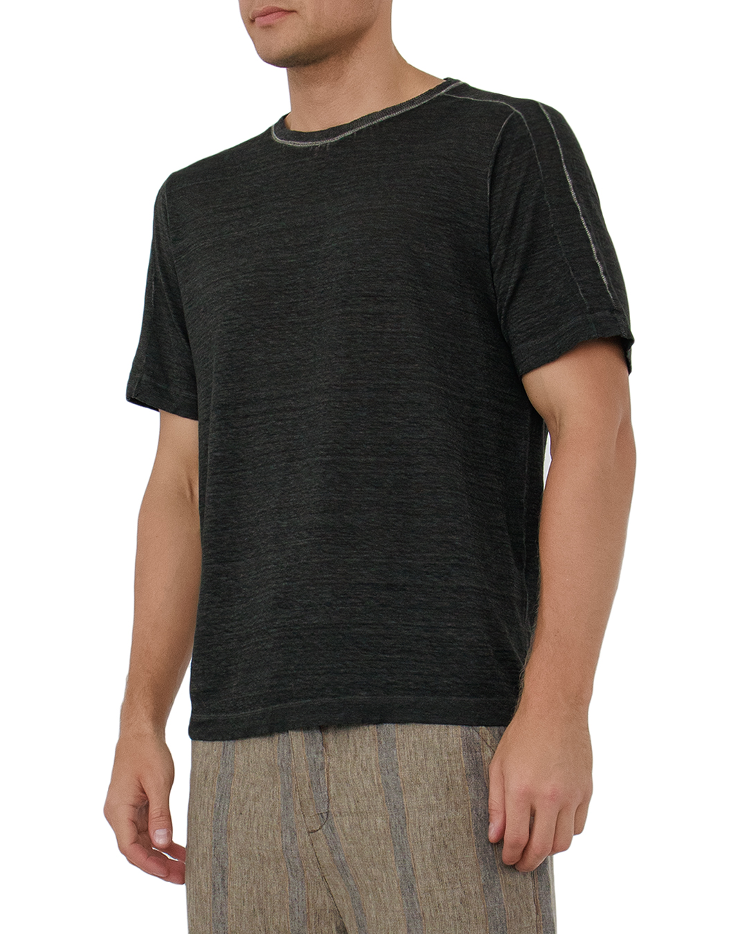 Футболка от Transit из конопляной нити — пример экологичного подхода к моде с изысканным минимализмом. Этот материал предлагает натуральное ощущение и прекрасную воздухопроницаемость, идеально подходя для летнего гардероба. Глубокий тёмный цвет придаёт модели современный вид, а мягкая текстура материала обеспечивает исключительный комфорт в носке. Прямой крой с легким акцентом на плечах создает универсальный силуэт, подходящий для любого стиля. Детали, такие как слегка необработанные края и видимые швы, добавляют дизайну уникальности и креативного шарма. Тонкая отделка вокруг горловины придаёт изделию завершенный вид, сохраняя при этом непринужденную эстетику. Эта футболка станет идеальным дополнением повседневного гардероба, придавая каждому образу ощущения легкости и устойчивости, отражая современные ценности и стиль.