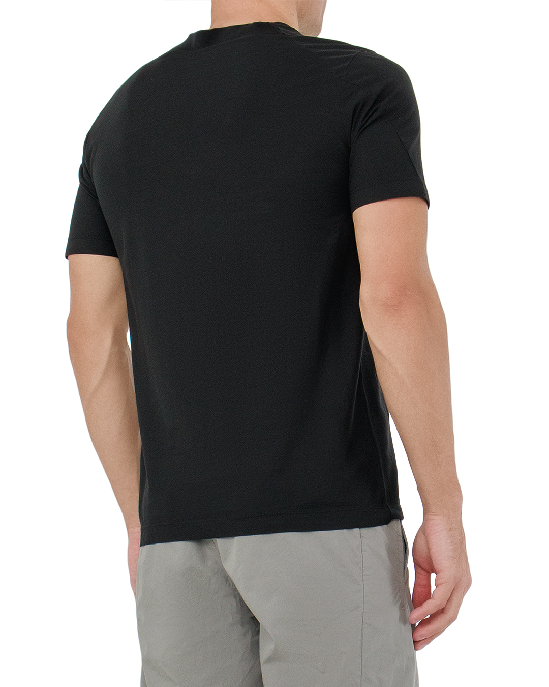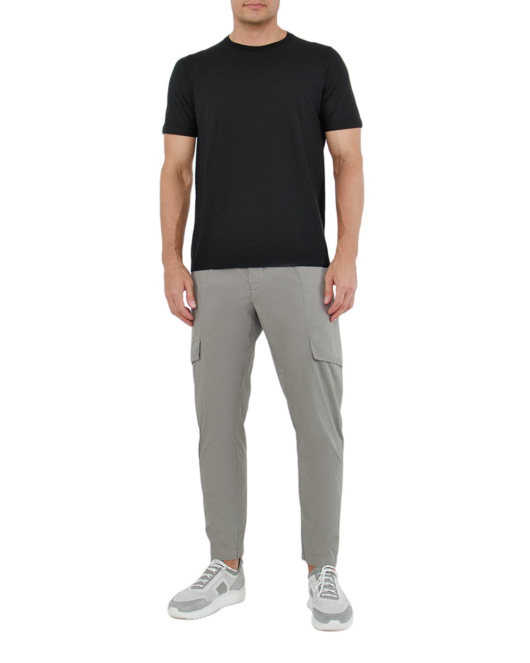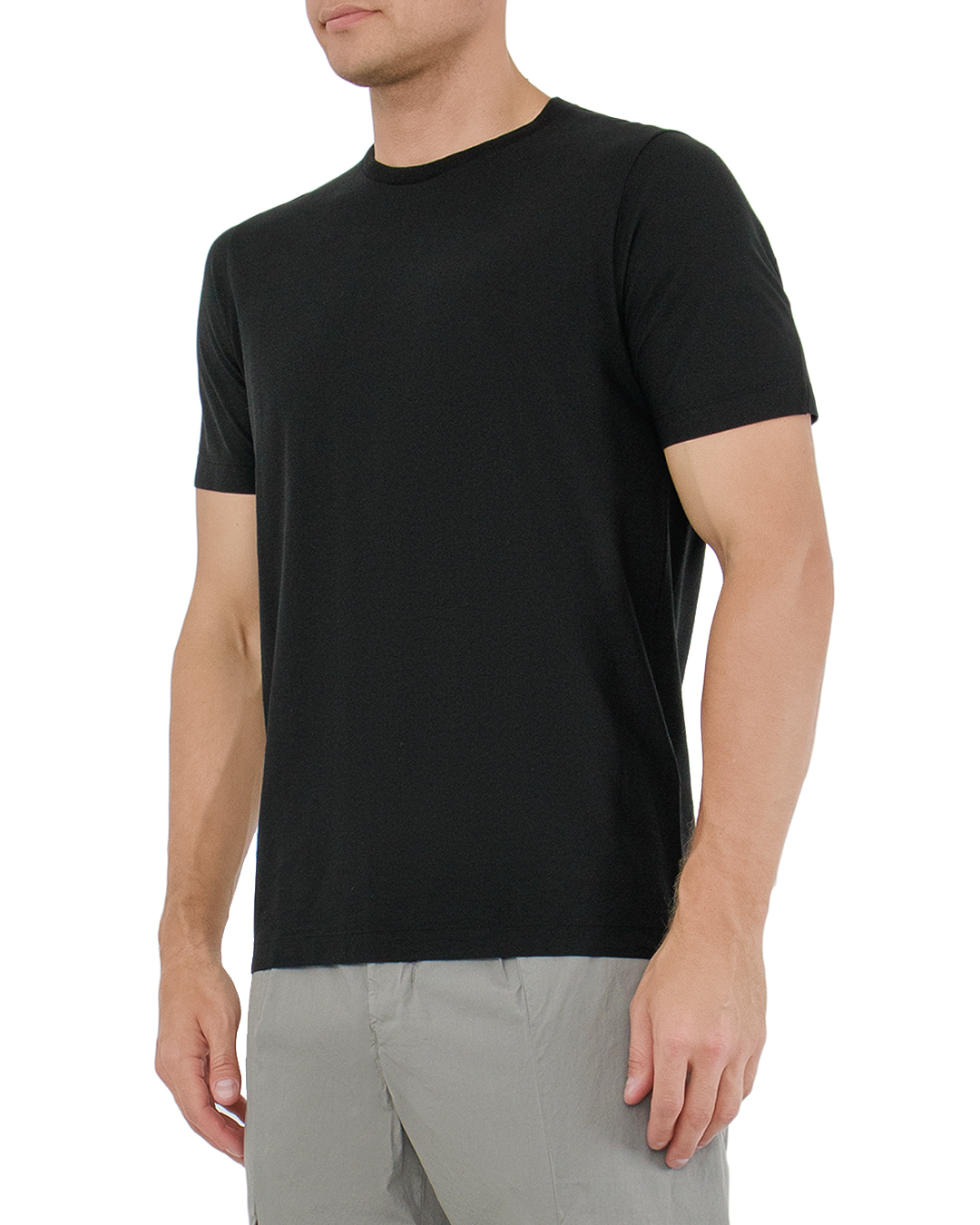 Эта футболка от Transit — квинтэссенция минималистского стиля и безупречной простоты. Выполненная из высококачественного материала, она предлагает исключительный комфорт и износостойкость, что делает её незаменимой в любом гардеробе. Глубокий черный цвет придает модели универсальную элегантность, позволяя ей легко адаптироваться как к повседневным, так и к более формальным образам. Классический прямой крой подчеркивает фигуру, обеспечивая свободу движений и комфортную посадку. Отделка выполнена с уделением внимания к деталям: мягкий круглый вырез горловины и аккуратные швы, исключающие дискомфорт. Безупречные края и отсутствие лишних элементов создают чистый и современный вид. Эта футболка идеально дополнит любой ансамбль, оставаясь базовой вещью, которая легко комбинируется с другими предметами гардероба, будь то джинсы или блейзер, привнося изысканность и стиль в каждый день.