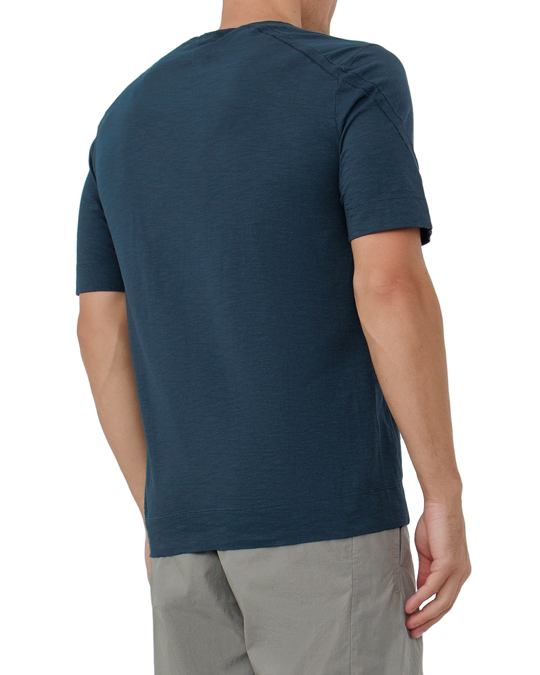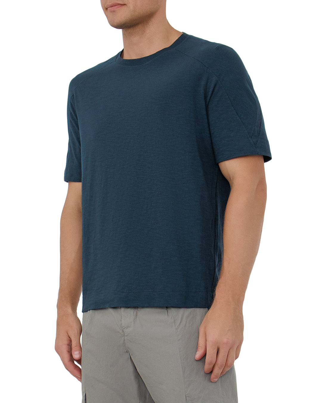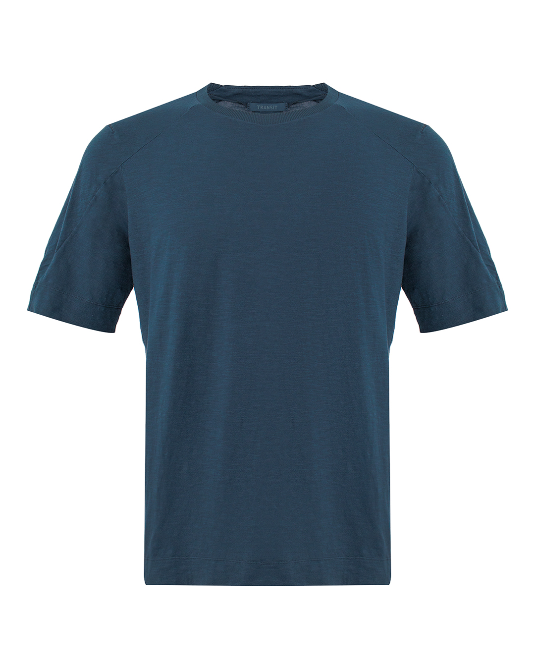 Эта футболка от Transit — квинтэссенция минималистского стиля и безупречной простоты. Выполненная из высококачественного материала, она предлагает исключительный комфорт и износостойкость, что делает её незаменимой в любом гардеробе. Насыщенный синий цвет придает модели универсальную элегантность, позволяя ей легко адаптироваться как к повседневным, так и к более формальным образам. Классический прямой крой подчеркивает фигуру, обеспечивая свободу движений и комфортную посадку. Отделка выполнена с уделением внимания к деталям: мягкий круглый вырез горловины и аккуратные швы, исключающие дискомфорт. Безупречные края и отсутствие лишних элементов создают чистый и современный вид. Эта футболка идеально дополнит любой ансамбль, оставаясь базовой вещью, которая легко комбинируется с другими предметами гардероба, будь то джинсы или блейзер, привнося изысканность и стиль в каждый день.