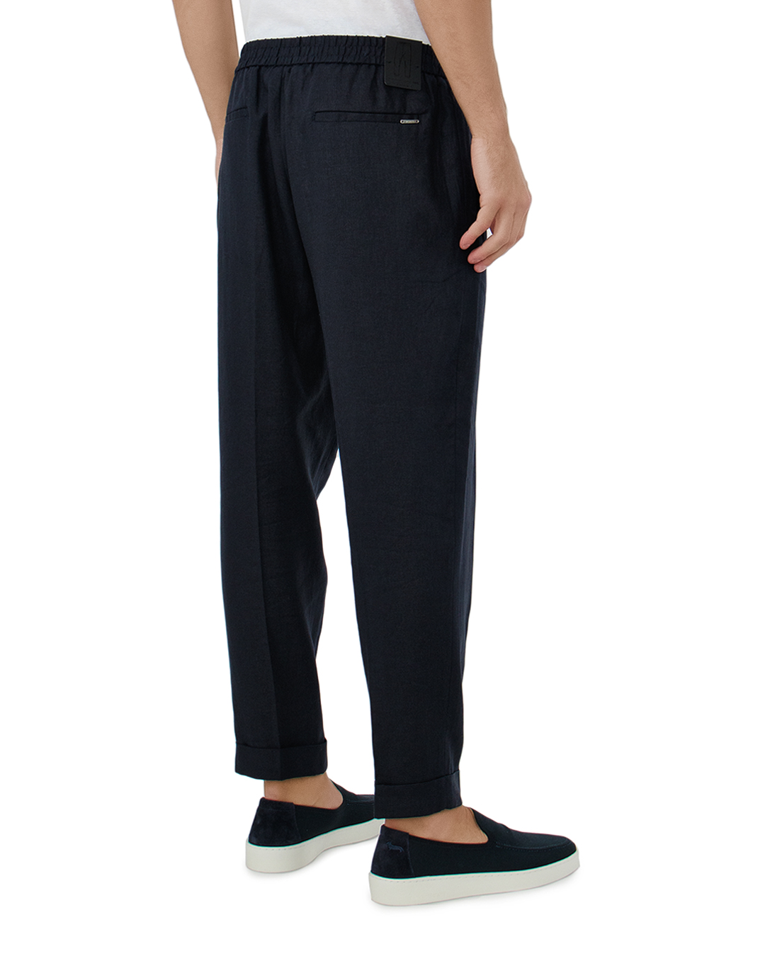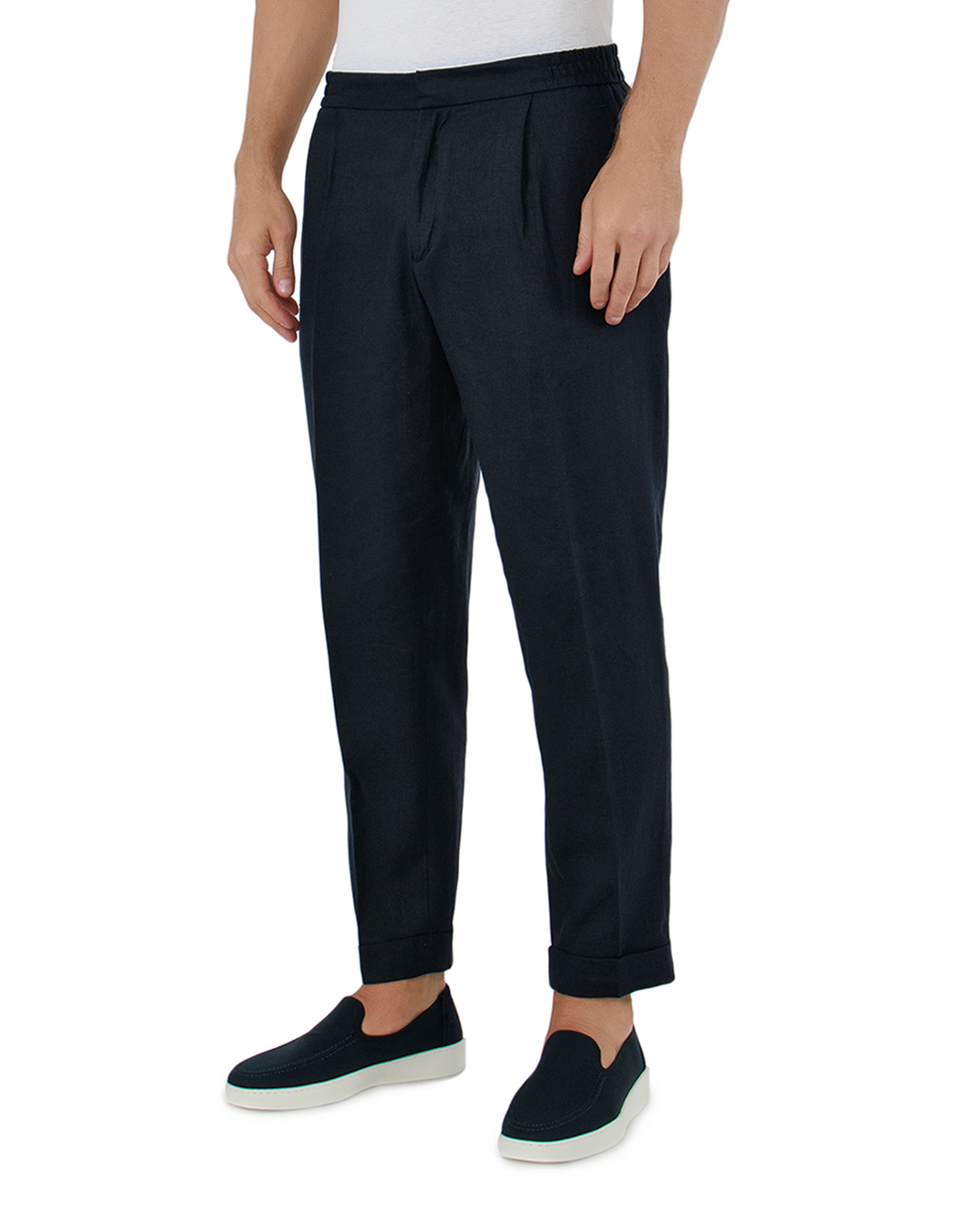 Эти брюки являются воплощением современной элегантности с непринужденным налетом casual-стиля. Изготовленные из легкой и дышащей ткани, они идеально подходят для создания как повседневных, так и более изысканных образов. Силуэт брюк продуман до мелочей: свободный крой обеспечивает комфорт и легкость движения, а зауженные к низу штанины добавляют образу утонченности. Легкие защипы на передней части придают объем и динамику, создавая эффект небрежной свободы. Эластичный пояс добавляет практичности, позволяя идеально адаптировать посадку к любой фигуре. Прямые, слегка укороченные штанины завершаются аккуратными отворотами, которые добавляют нотку индивидуальности и стиля. Тщательно проработанные детали, такие как потайные швы и внутренние отделки, делают эти брюки отличным выбором для тех, кто ценит комфорт, не жертвуя стилем. Эти брюки прекрасно впишутся в любой гардероб, становясь идеальным фоном для экспериментов с аксессуарами и обувью.