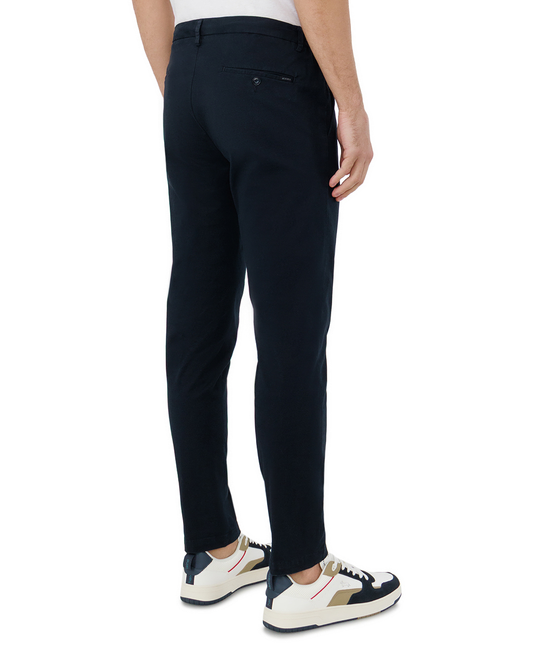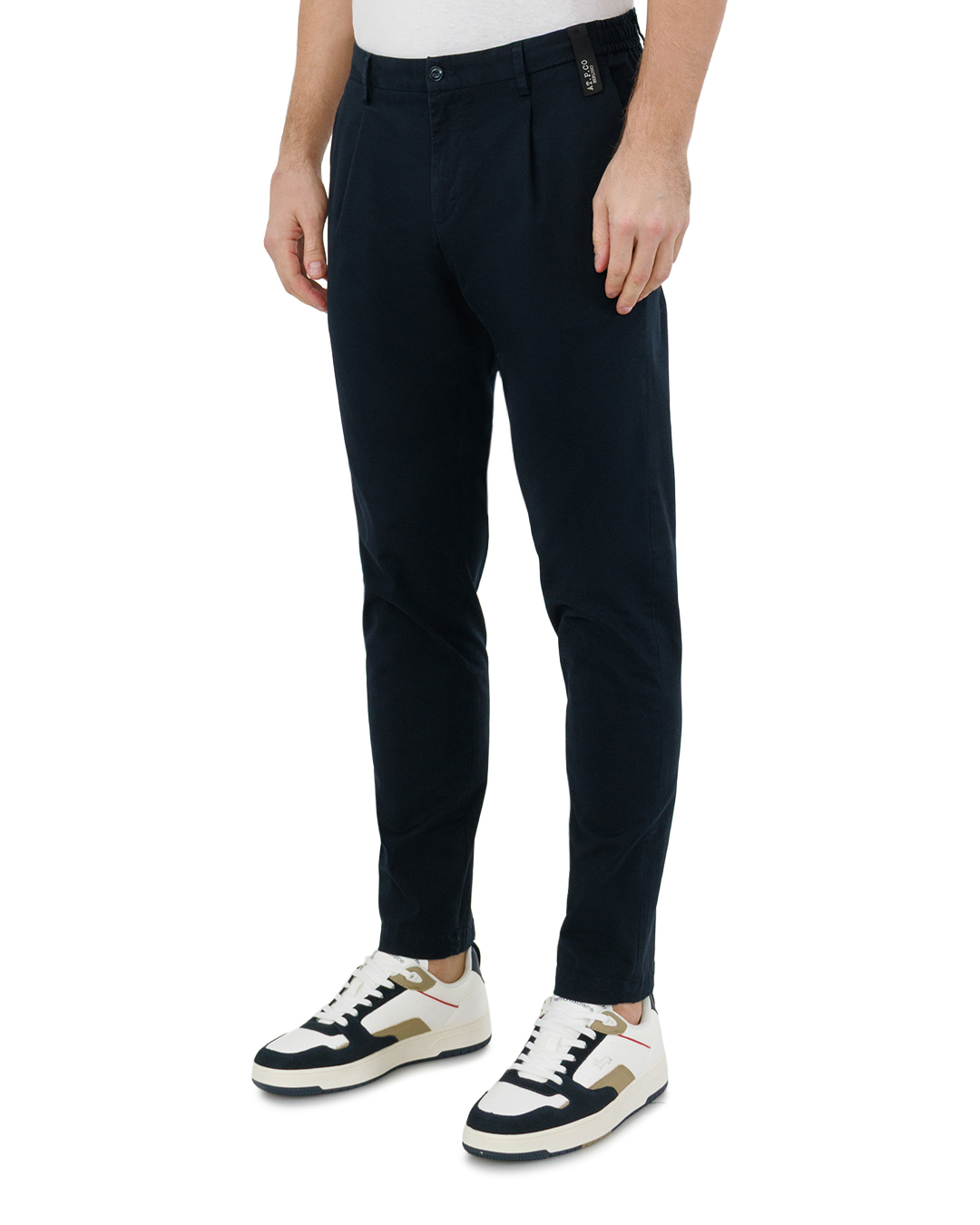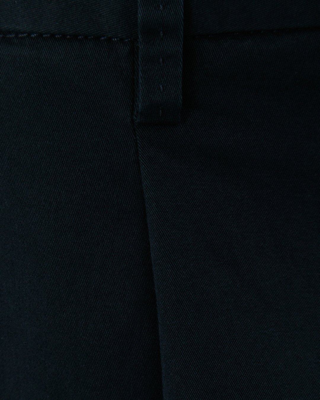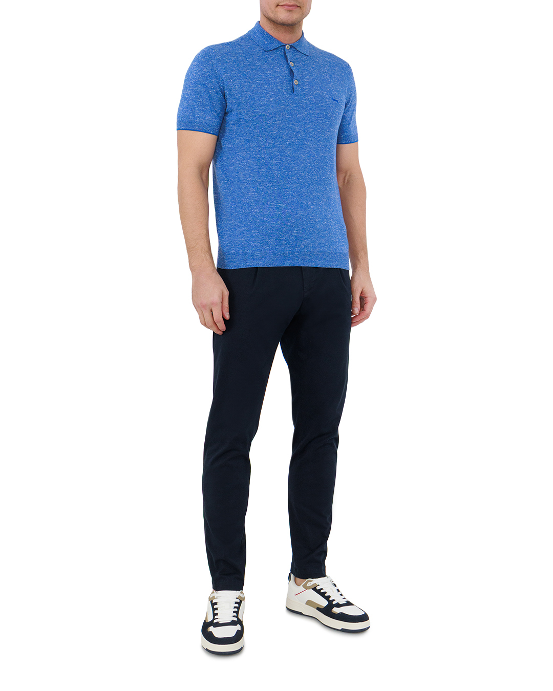 Эти брюки — воплощение сдержанной элегантности. Тёмно-синий оттенок создаёт благородный, лаконичный фон, а приталенный крой подчёркивает стройность силуэта, не сковывая движений. Классические защипы на поясе добавляют изысканности, а застёжка на пуговицу обеспечивает надёжную фиксацию. Чистые линии и минималистичная отделка делают модель универсальной — она легко впишется как в деловой, так и в повседневный образ. Аккуратные стрелки придают строгости, а умеренная длина гармонично завершает композицию.