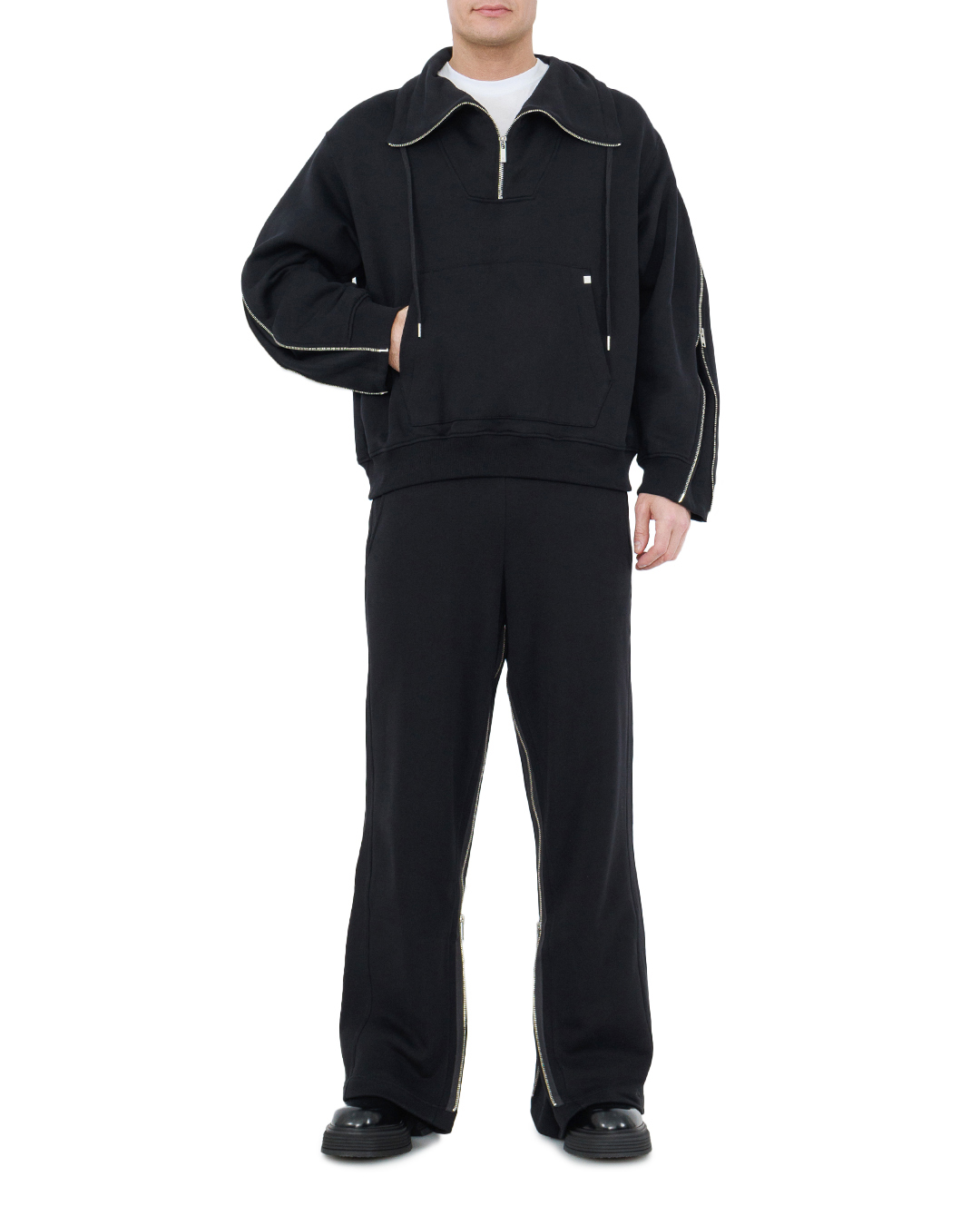 Спортивные штаны с эластичной талией из мягкого хлопкового терри из Португалии. Регулируйте объем с помощью молний во всю длину по внутренней стороне штанины, оставляя их открытыми для прямого кроя, закрытыми для зауженного кроя или частично застегнутыми для индивидуального образа.