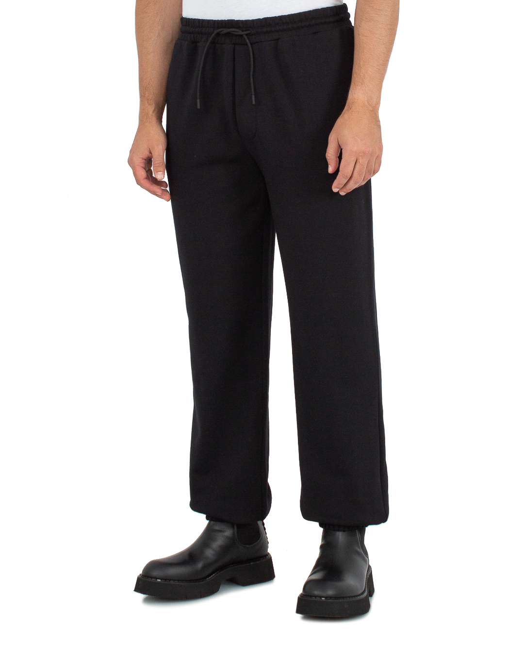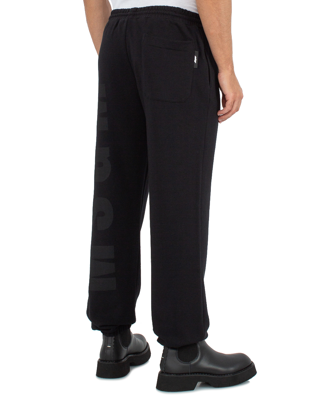 Брюки MSGM из трикотажного хлопка черного цвета. Модель в спортивном стиле с высокой посадкой на талии с эластичной линией пояса с завязками.