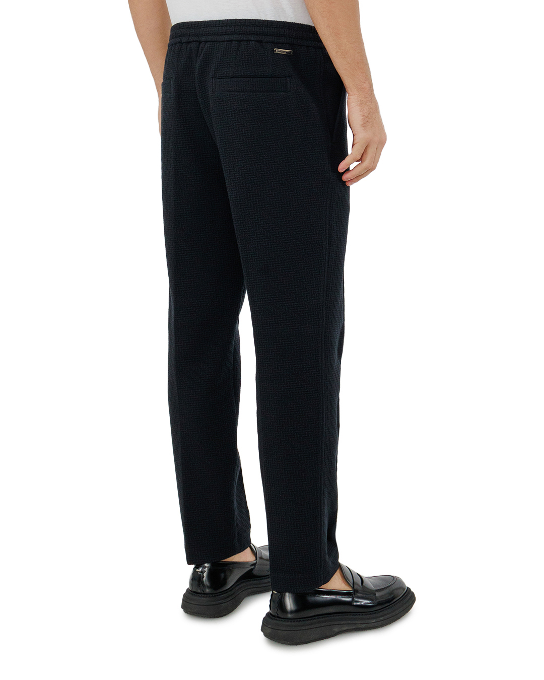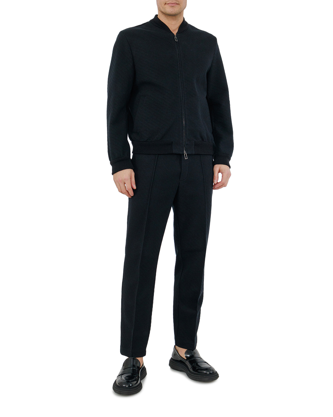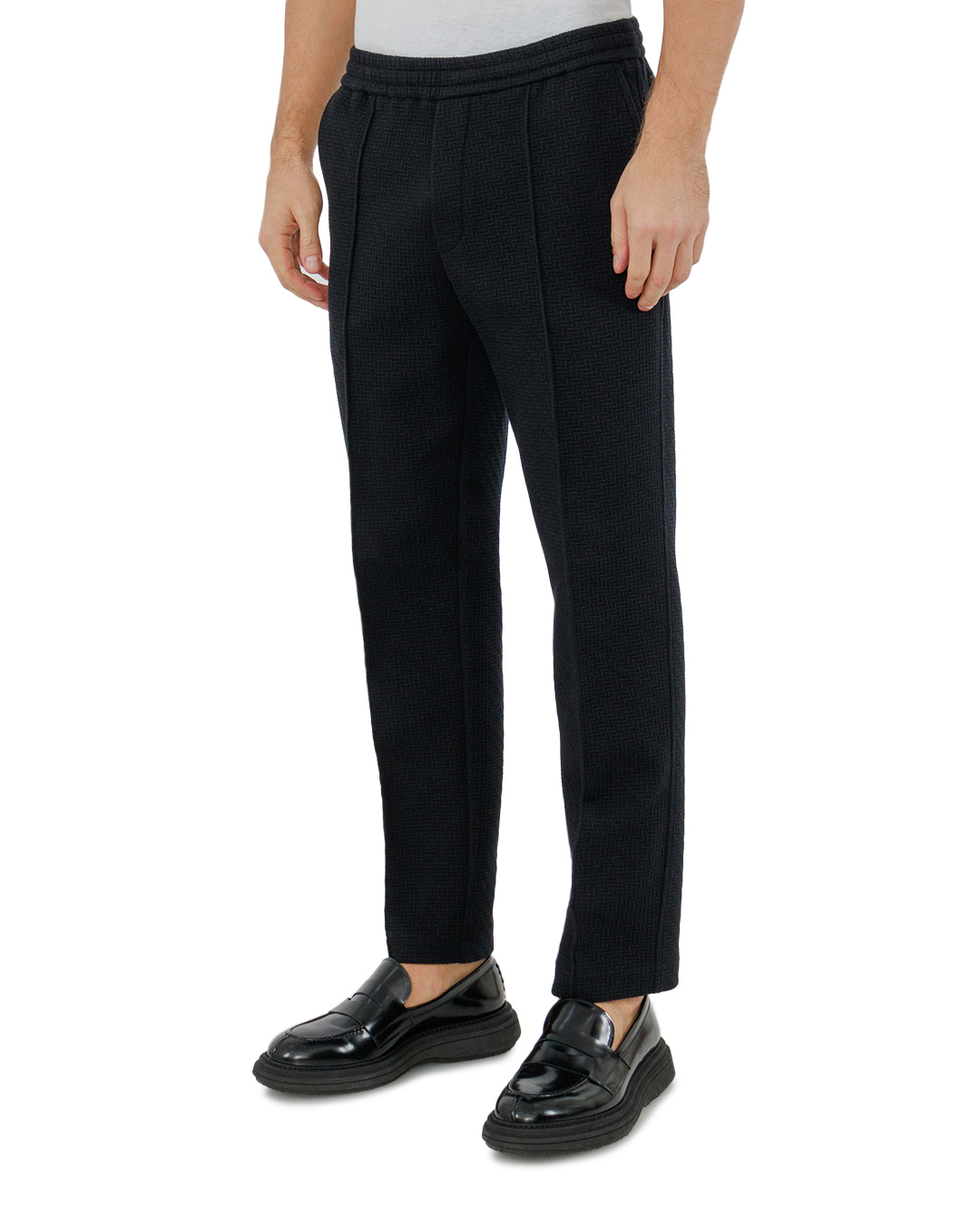 Эти брюки олицетворяют утончённый стиль в сочетании с современным минимализмом. Их глубокий тёмный оттенок и изысканная текстурированная ткань создают элегантный и профессиональный образ. Пояс с эластичной вставкой обеспечивает комфорт и привлекательную посадку на талии, адаптируясь к фигуре и добавляя функциональности. Линия талии дополнительно подчеркнута за счёт аккуратной структуре швов, что добавляет законченности дизайну. Классический прямой крой удлиняет силуэт, создавая строгую и изящную линию, придающую образу динамики и уверенности. Передняя часть брюк украшена центральной складкой, придающей изделиям формальную нотку и визуально удлиняющей ноги. Боковые карманы с аккуратной обработкой швов сохраняют общий лаконичный стиль, обеспечивая при этом практичность. Завершает образ тщательно проработанный низ брючин, с кантом, который добавляет изюминку и завершающий штрих. Эти брюки станут идеальным дополнением как к деловому гардеробу, так и к элегантным вечерним ансамблям, воплощая в себе гармонию стиля и функциональности.